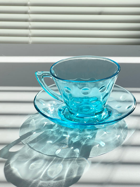 Sold outMilk Glass Cup & Saucer - Blue Fog