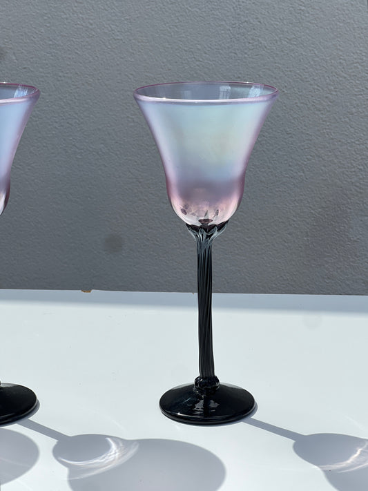 Pink Iridescent and Black Floral Stem Glass