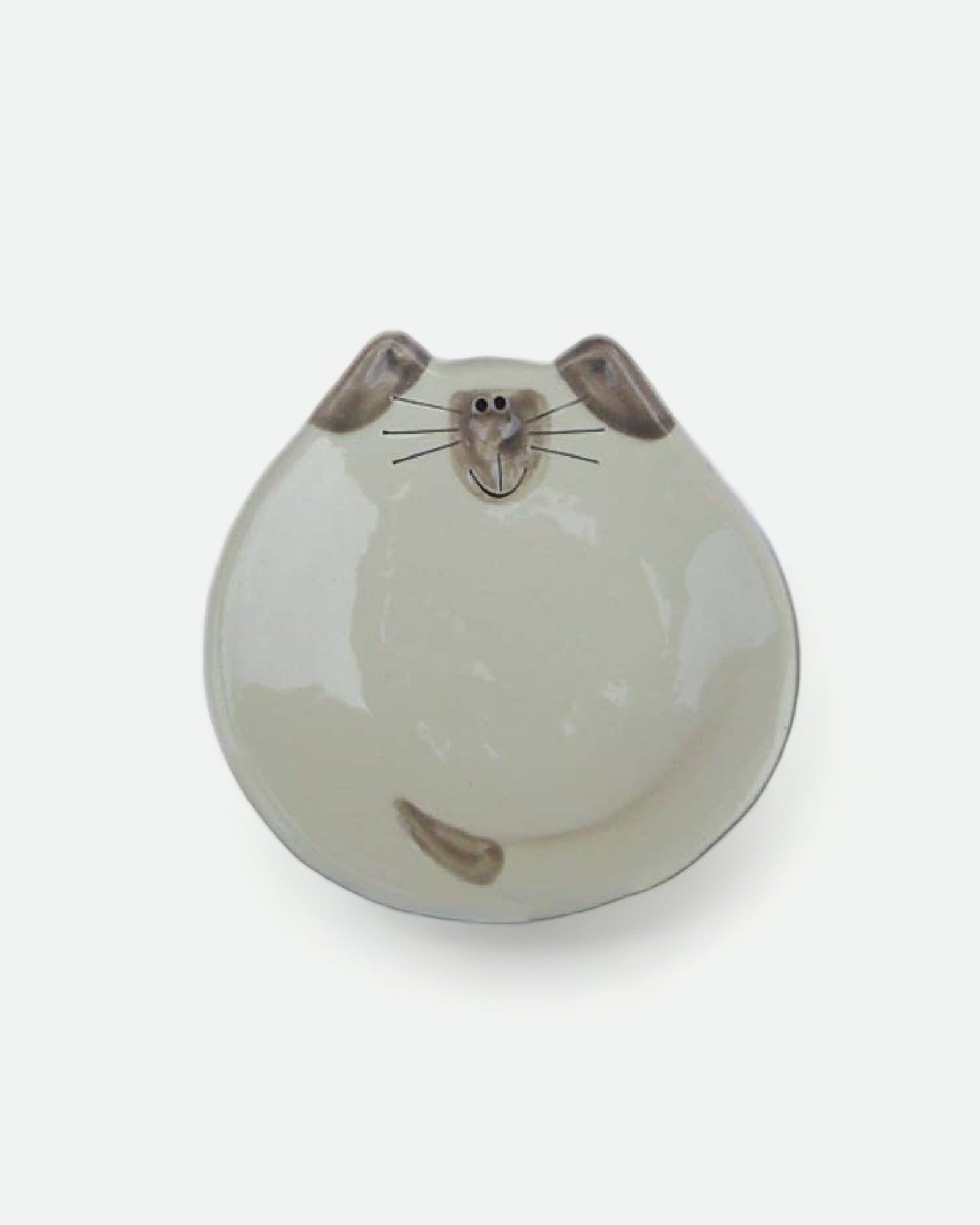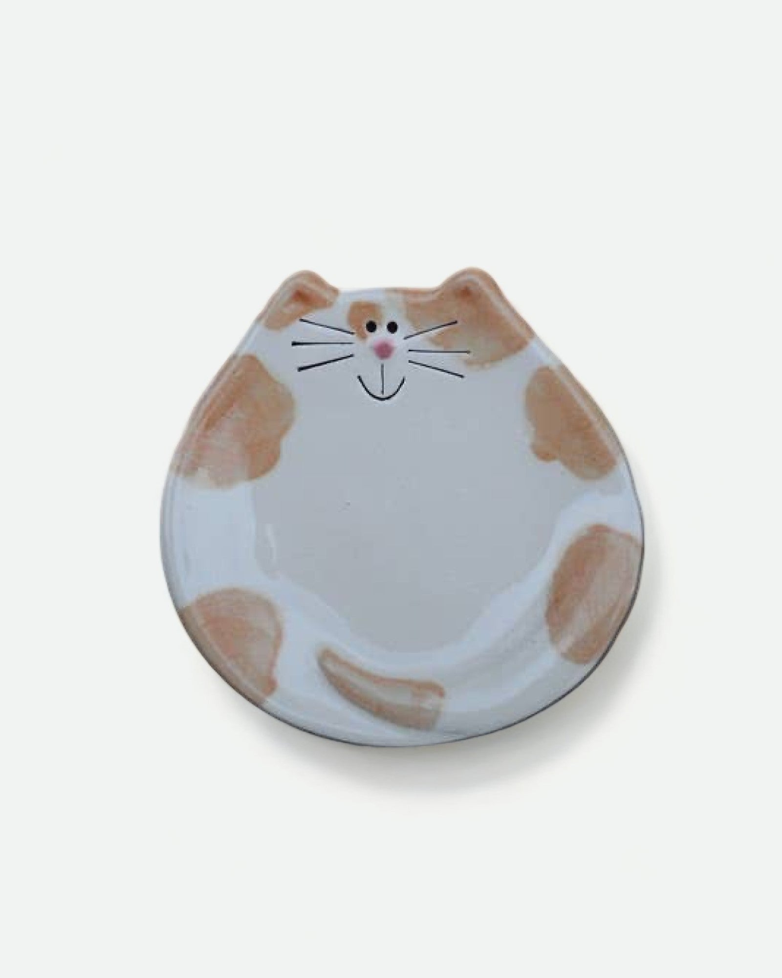 Handmade kitty dish by August ceramics studio in Whitinsville, MA. Hand painted with ceramic glazes. It is food and dishwasher safe and has many uses: little snacks, spoon-rest, soap dish, tea bag rest, ring dish, or even ashtray. You might find one that looks similar to your cutie at home!