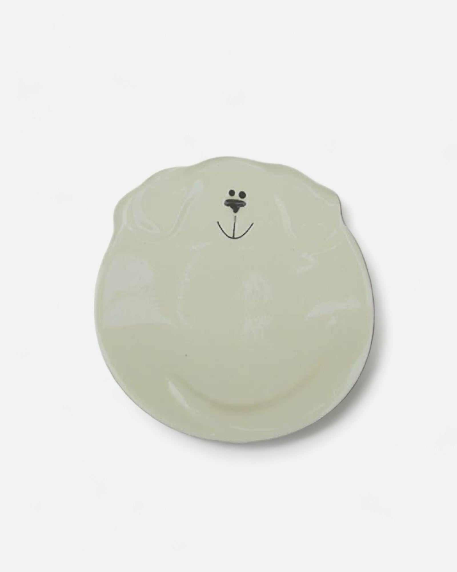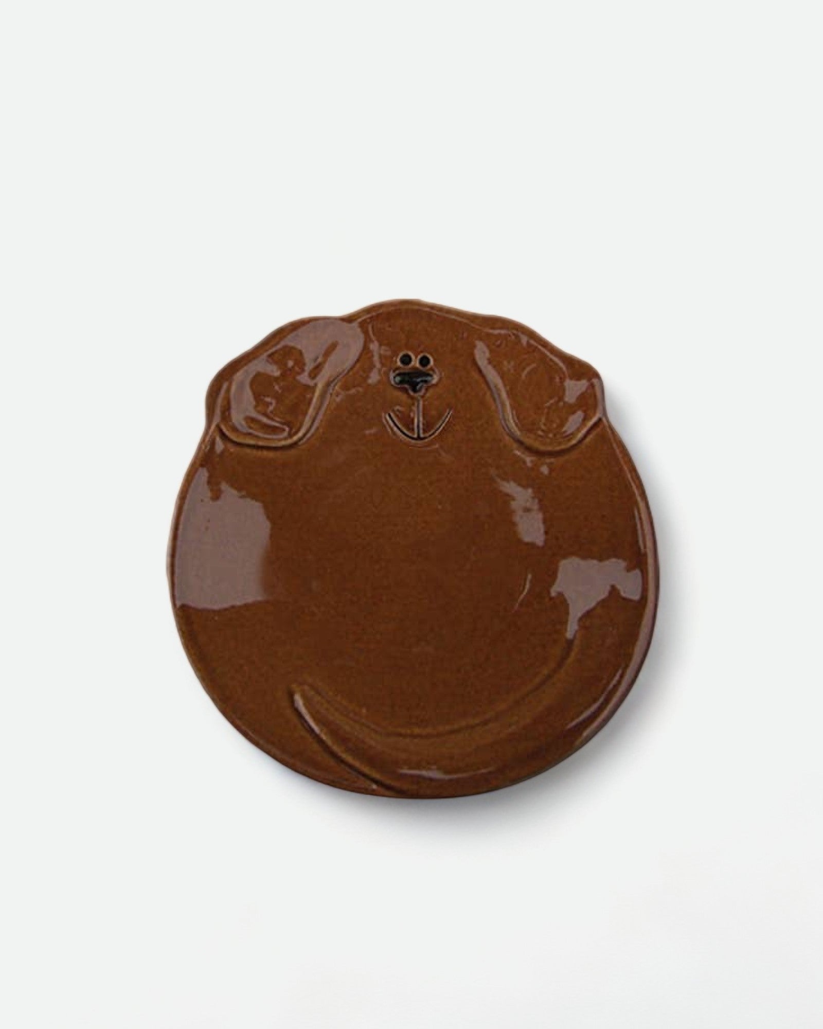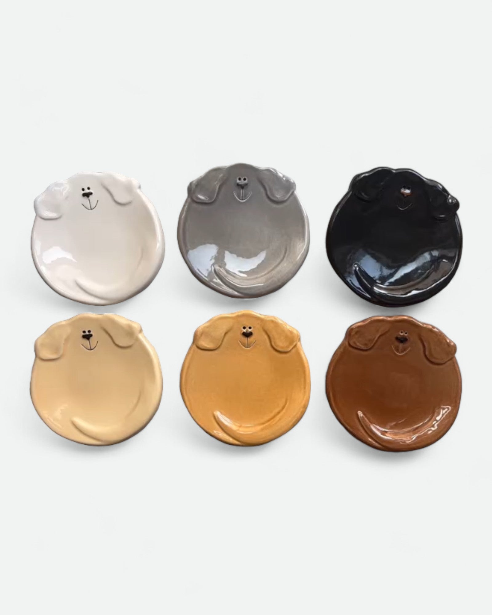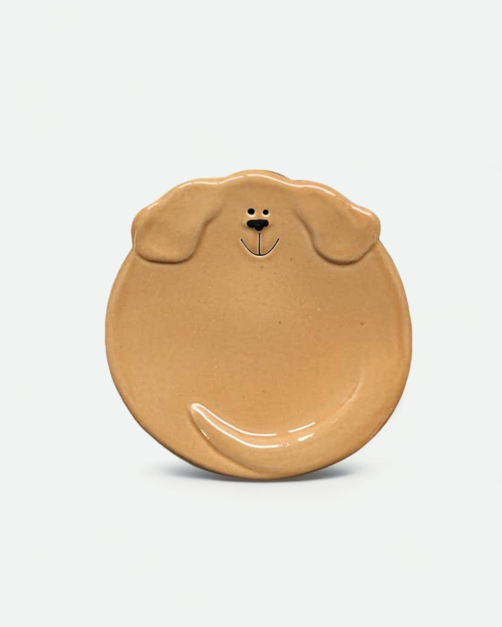 Handmade dog dish by August ceramics studio in Whitinsville, MA. Hand painted with ceramic glazes. It is food and dishwasher safe and has many uses: little snacks, spoon-rest, soap dish, tea bag rest, ring dish, or even ashtray. You might find one that looks similar to your cutie at home!