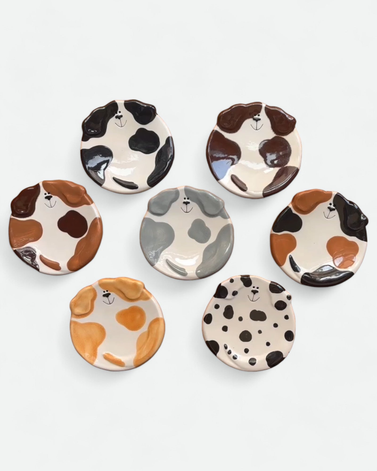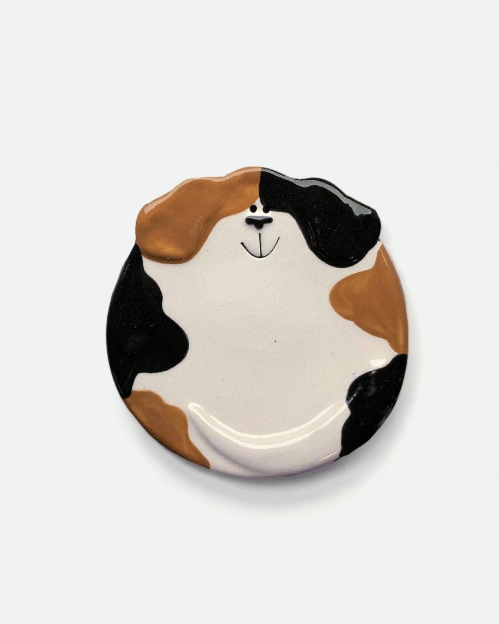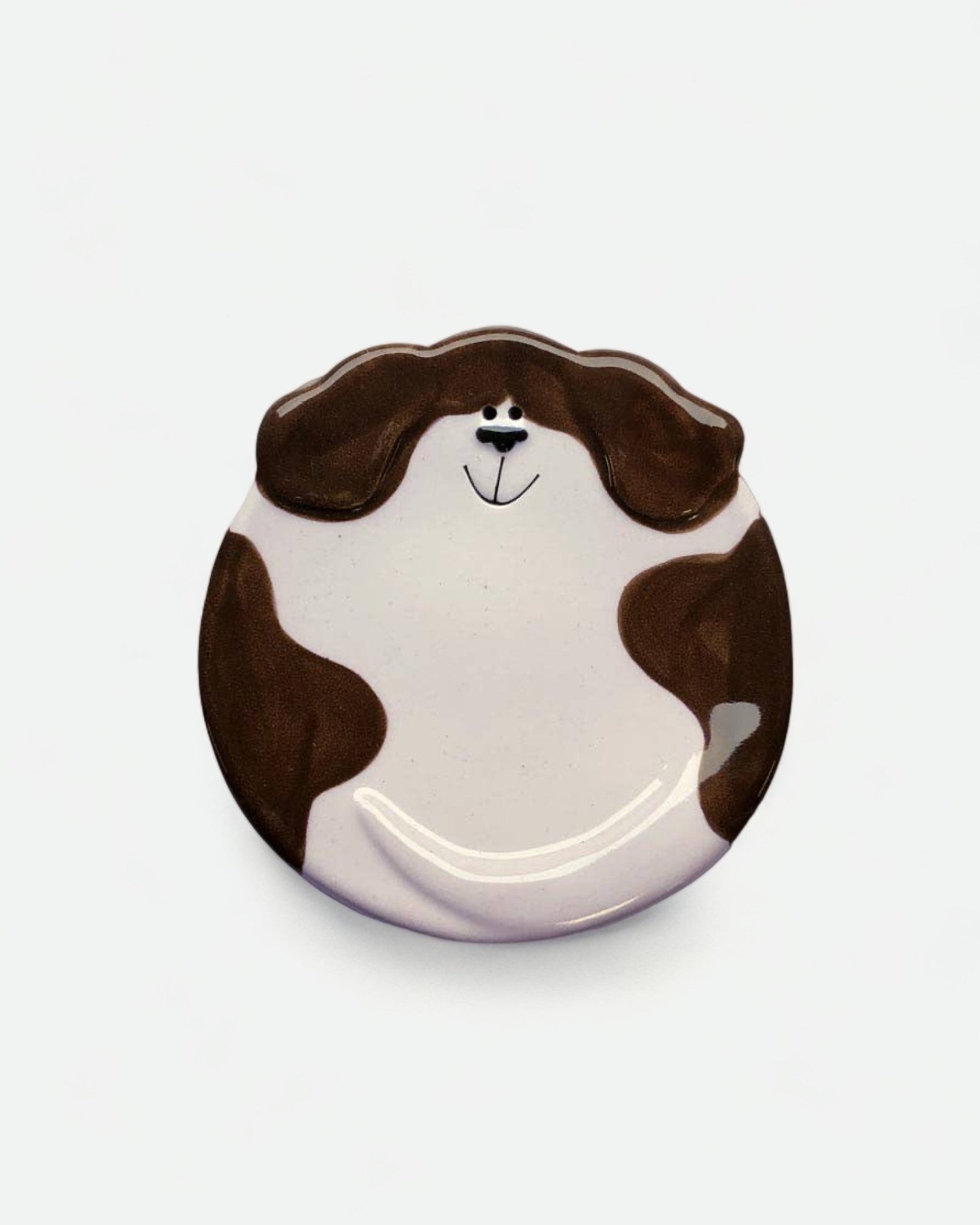 Handmade dog dish by August ceramics studio in Whitinsville, MA. Hand painted with ceramic glazes. It is food and dishwasher safe and has many uses: little snacks, spoon-rest, soap dish, tea bag rest, ring dish, or even ashtray. You might find one that looks similar to your cutie at home!