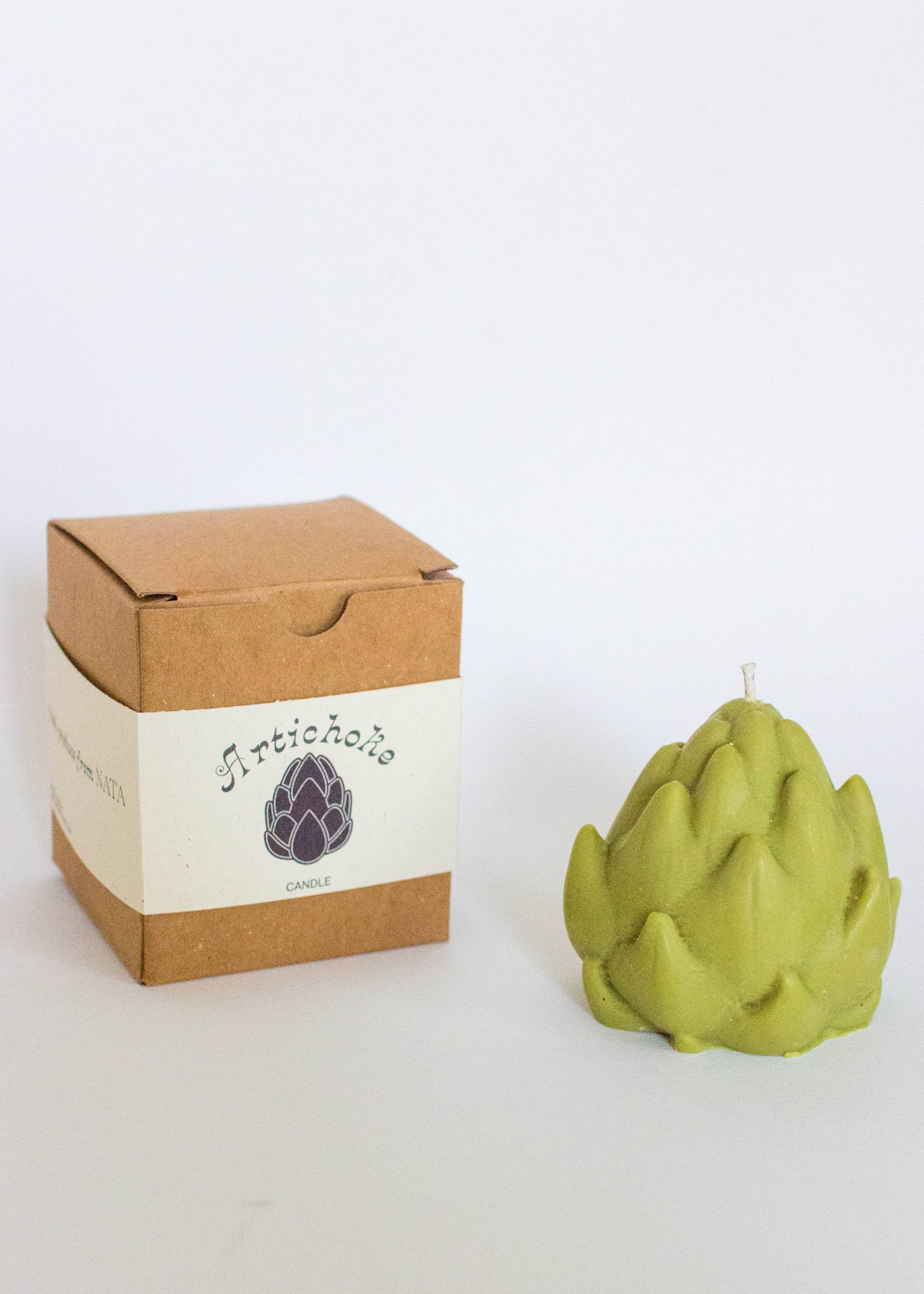 Handmade artichoke candle by UK based sculptural candle artists Anna + Tatiana.