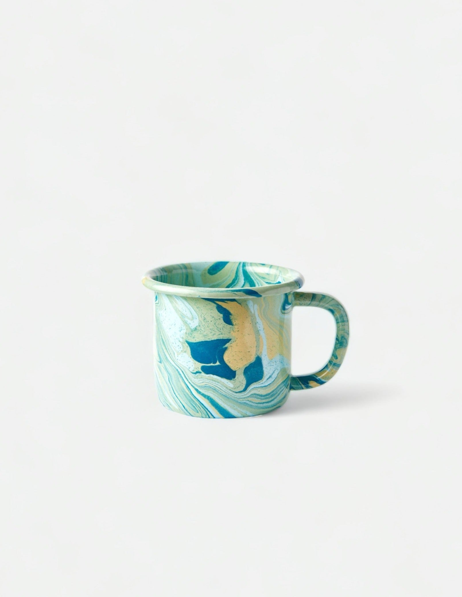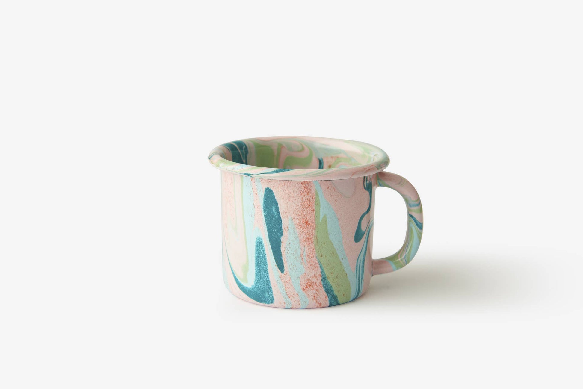 Swirl Enamelware is co-created and designed in Turkey by sisters Basak Onay and Oyku Thurston. These handmade pieces are made by fusing porcelain onto heavy gauge steel.
