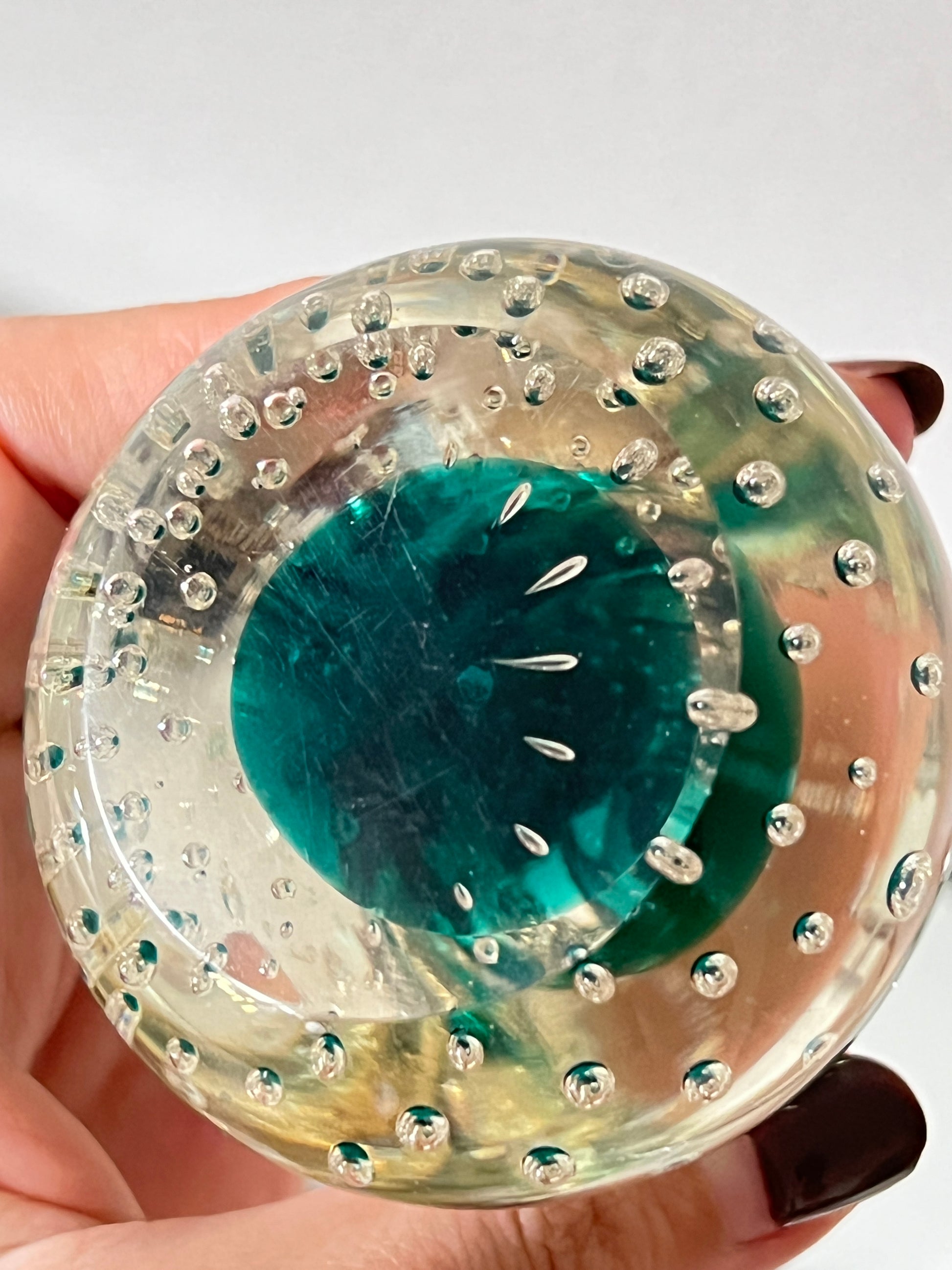 "Bullicante" as in Italian, or "controlled bubble" is a glass making technique. Hand made glass nearly always has a few small bubbles occurred during glass making process. Early glass markers invented tools to make this "incident" more regular and into a controlled pattern.