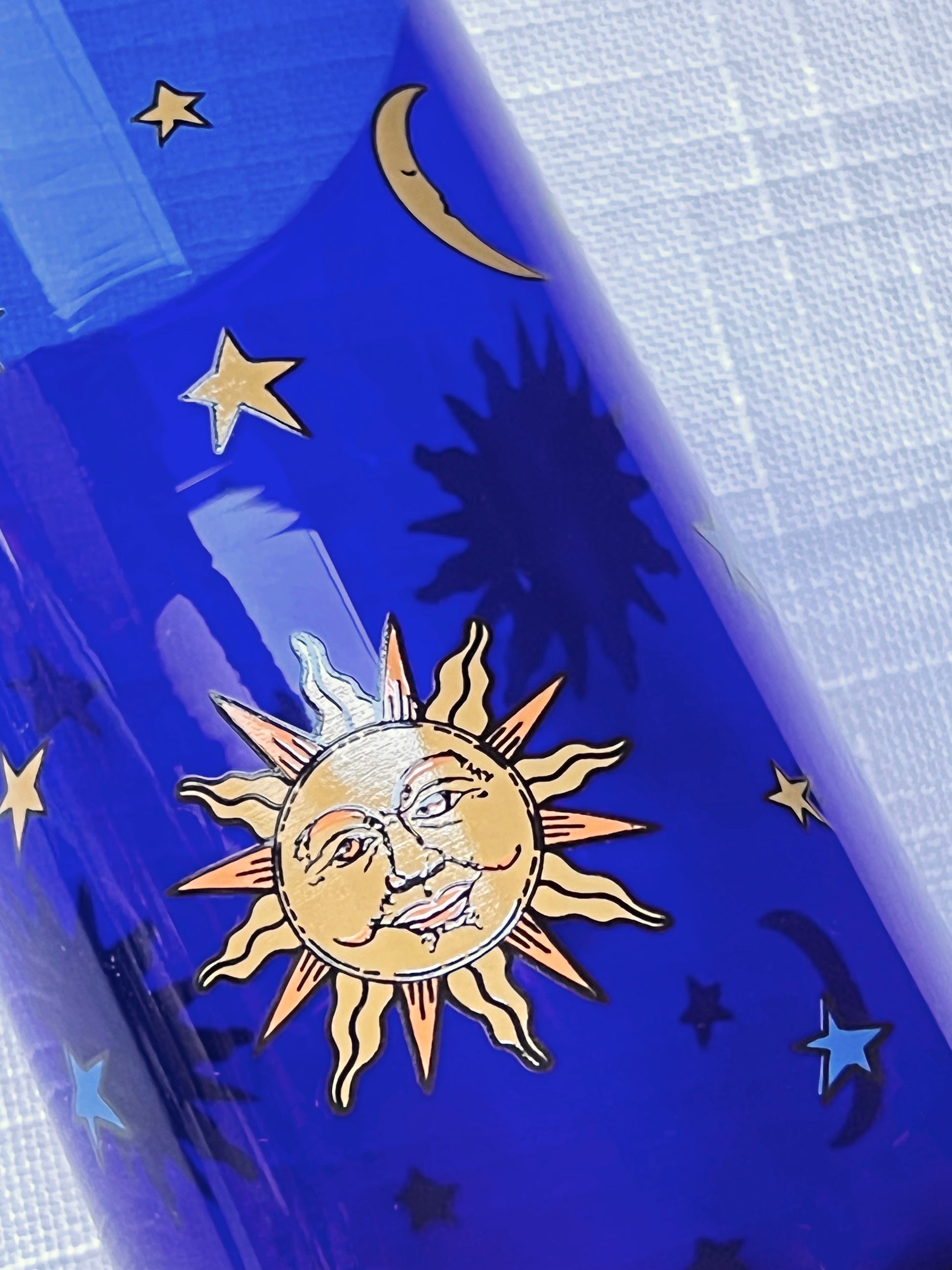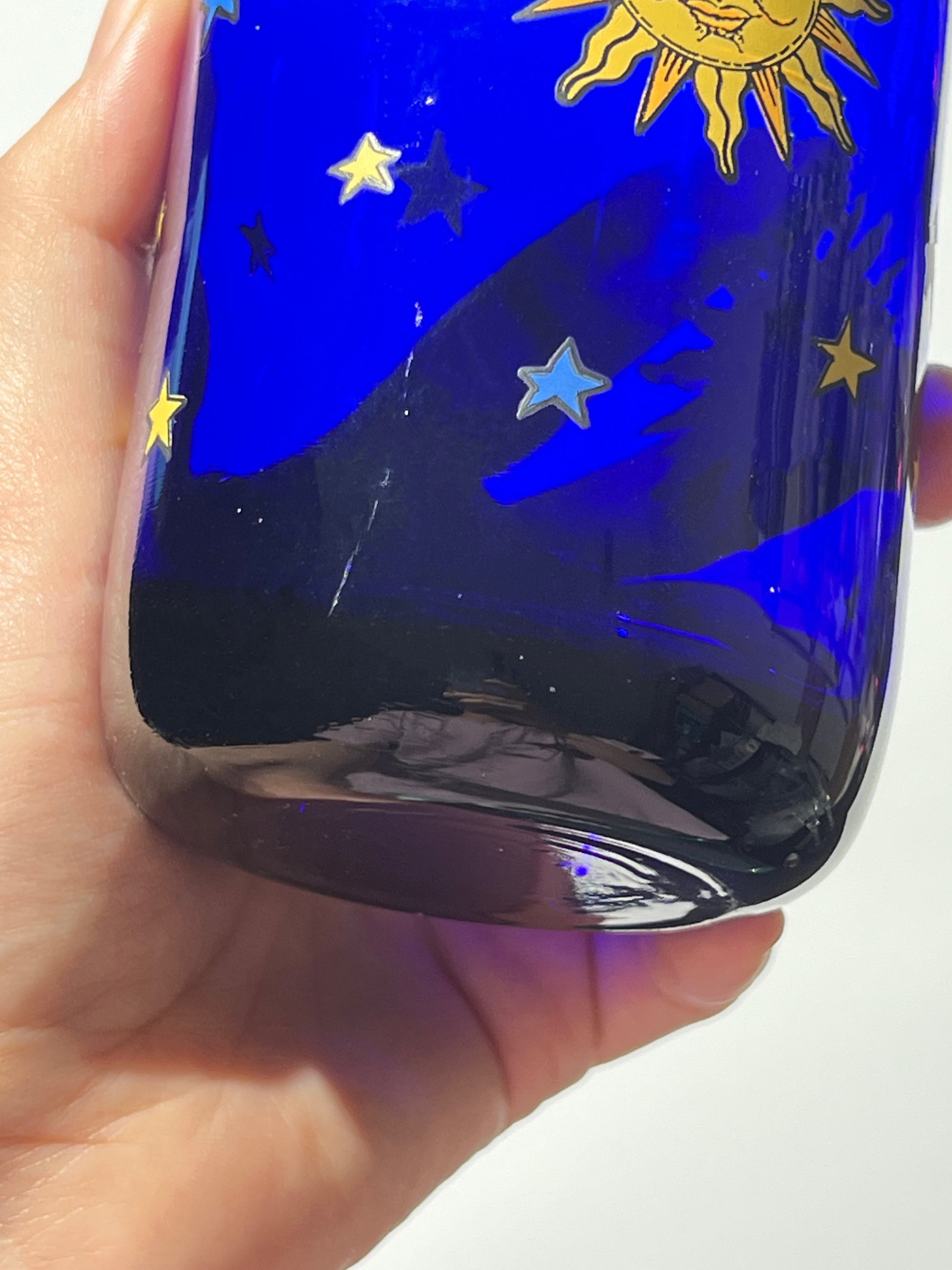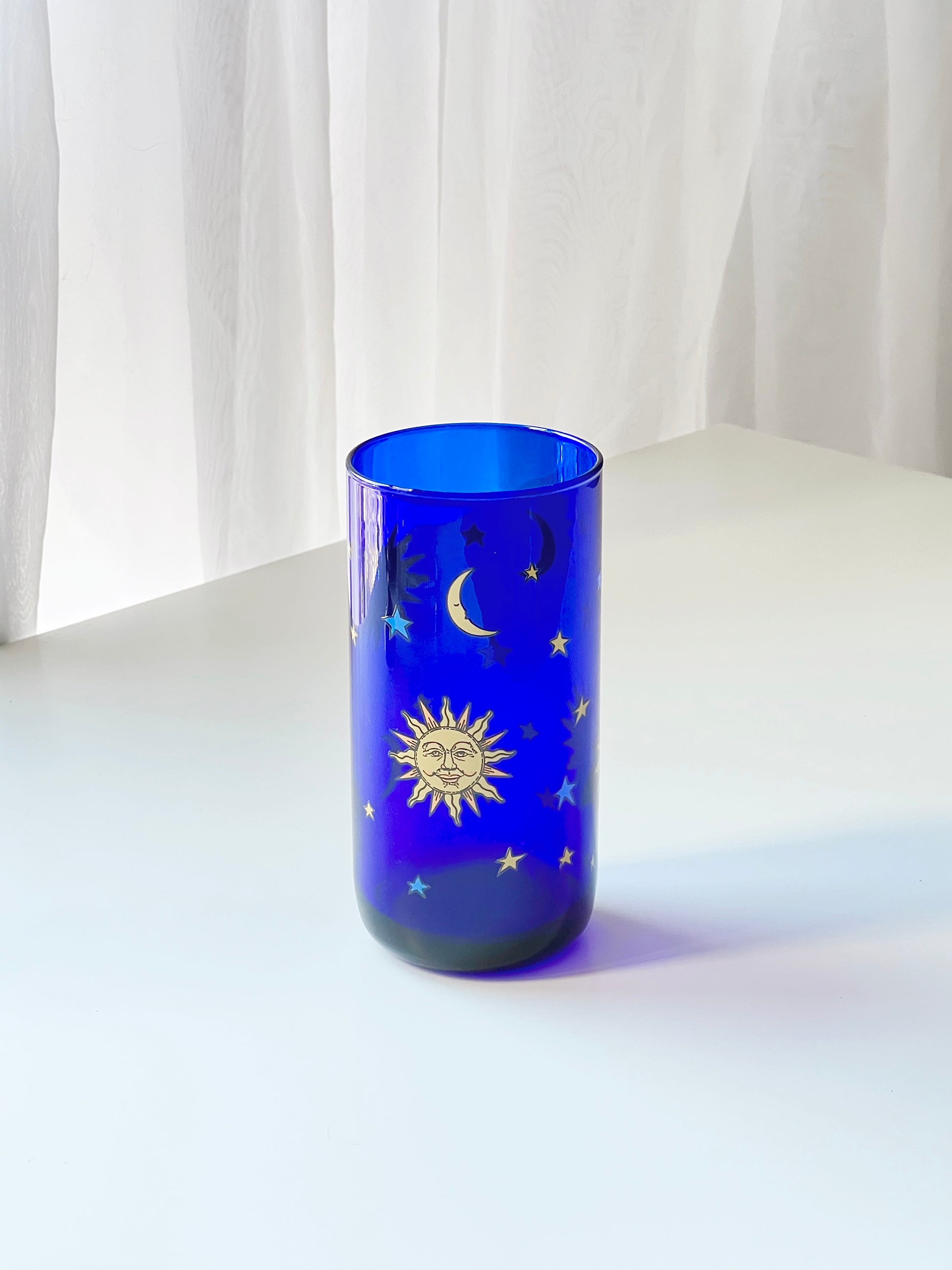 Retro sun moon star. The same celestial pattern glass shown in Friends.