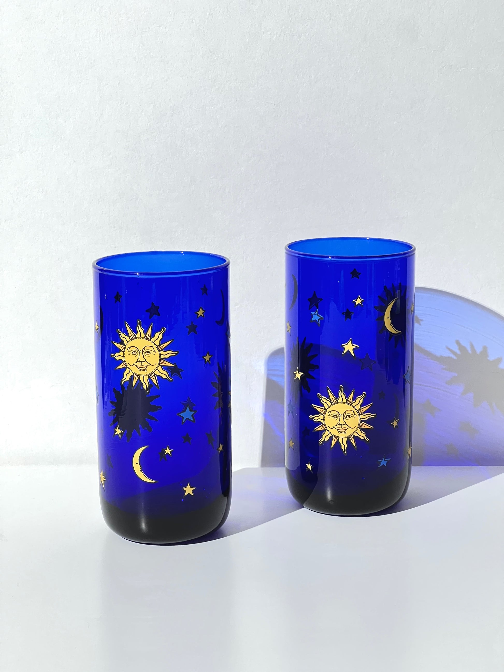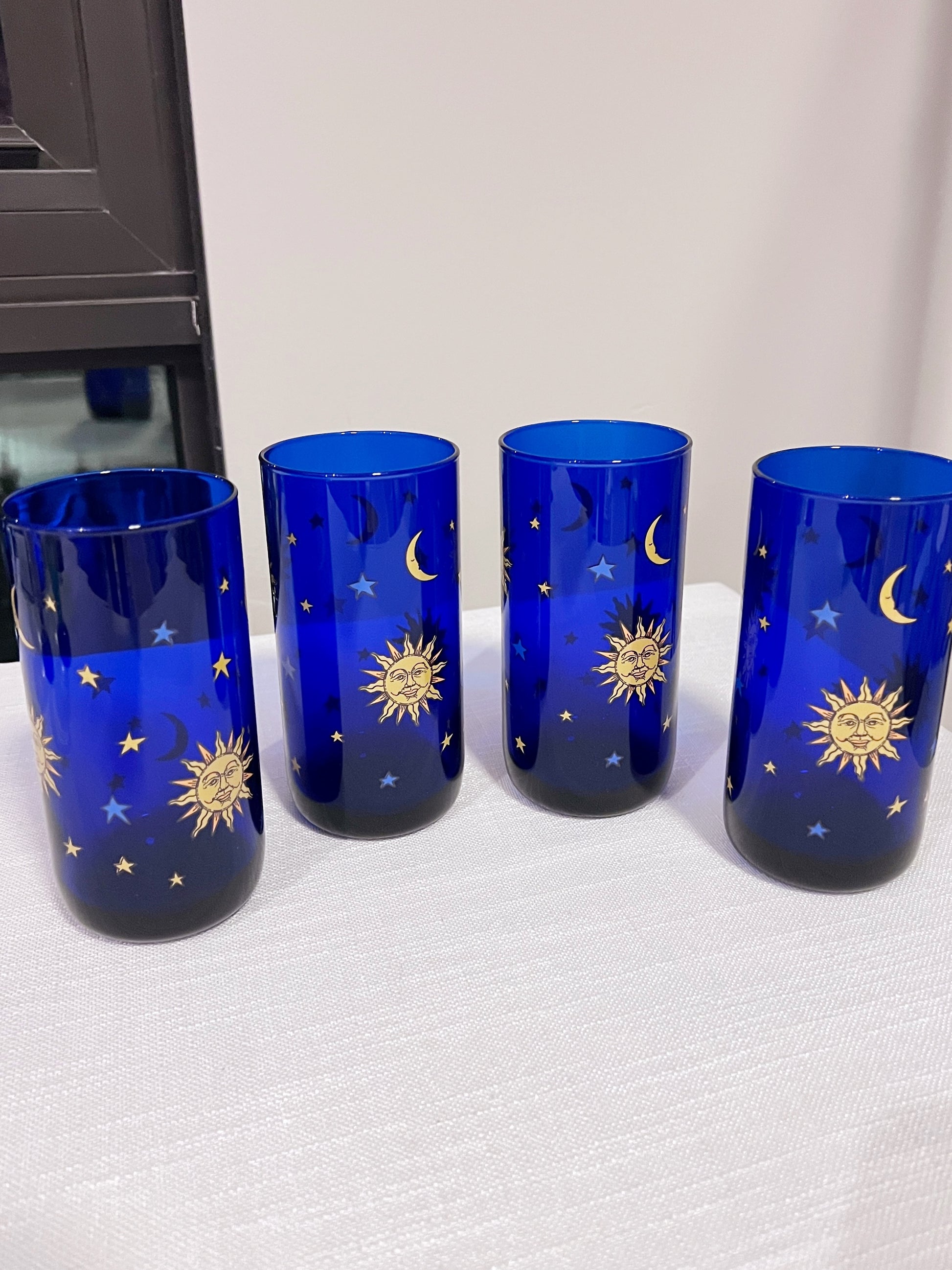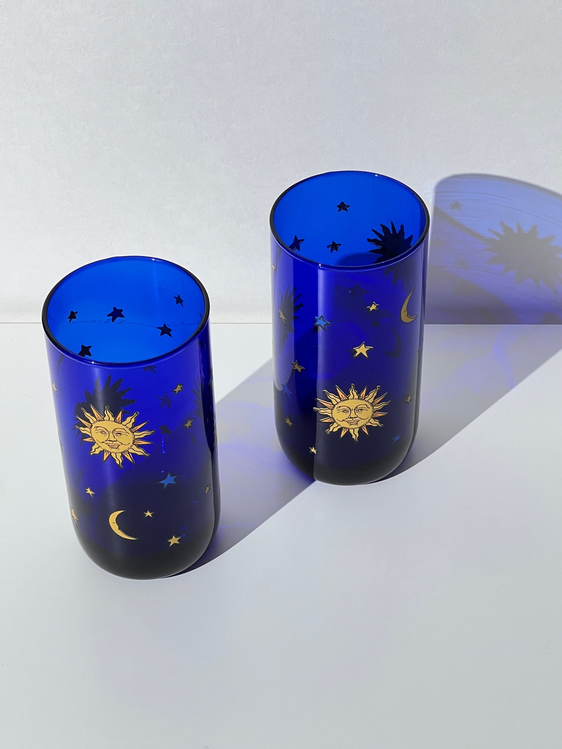 Retro sun moon star. The same celestial pattern glass shown in Friends.