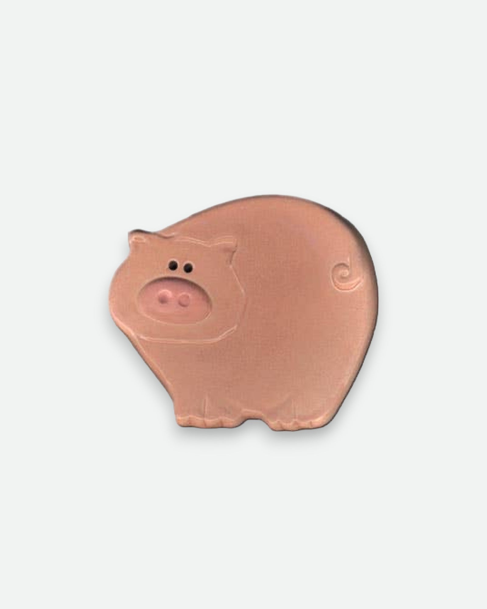 Handmade mini pig dish by August ceramics studio in Whitinsville, MA giving you a sense of farm life. Hand painted with ceramic glazes. It is food and dishwasher safe and has many uses: sauce, spoon-rest, tea bag rest, ring dish, etc.