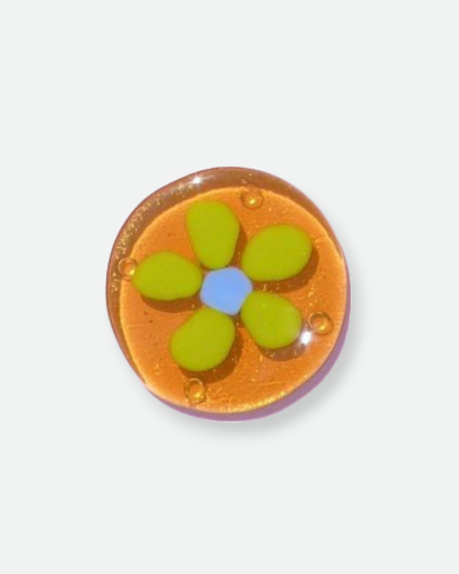 Handmade fused glass coaster by Florida glass artist will make your drinks more Floral! The Flower collection is available in the Cloud White, Honey, Slime and Lavender base, with different flower color combinations. Please note, each coaster is handmade thus will be unique in shape, size, and colors.