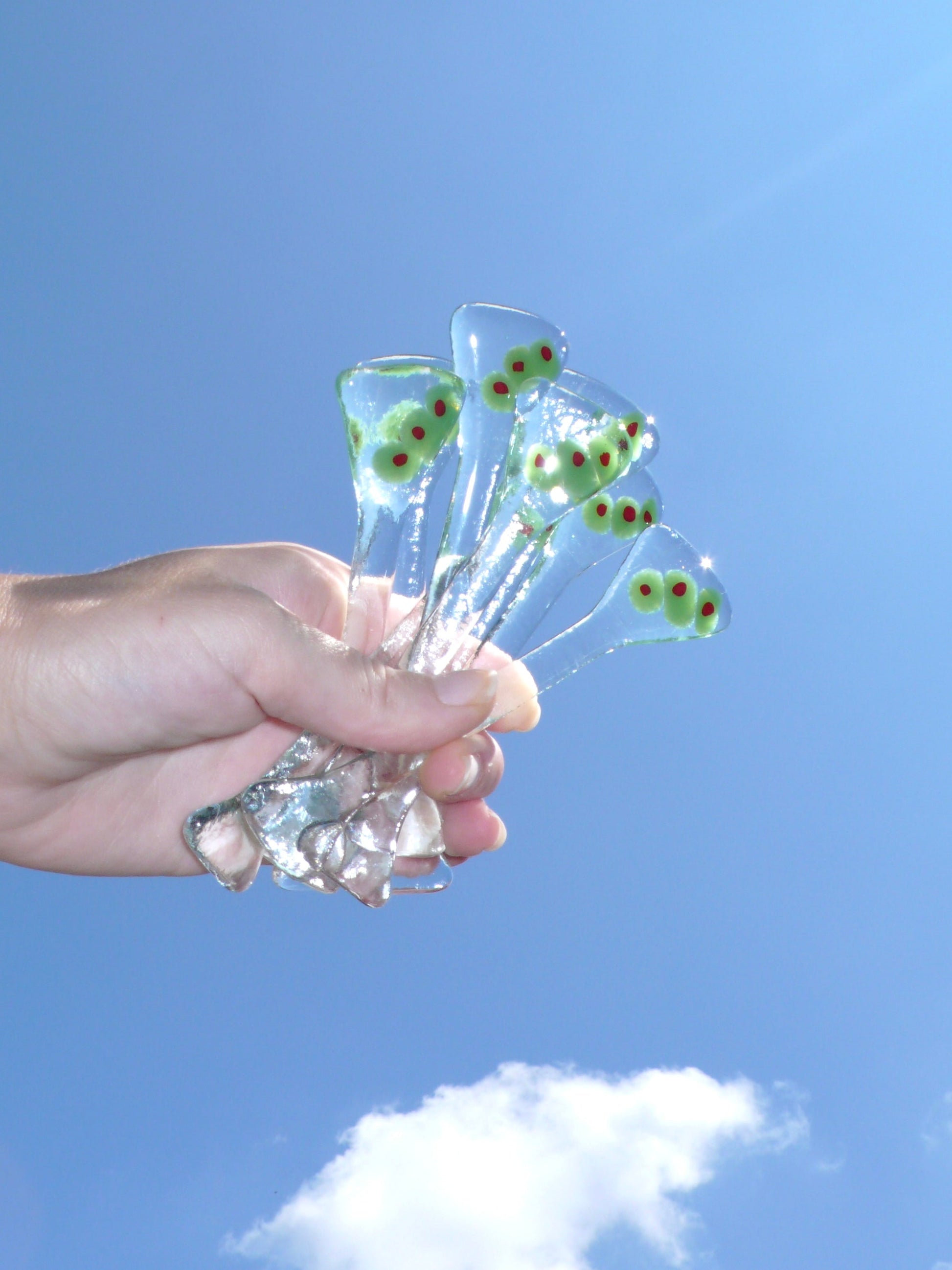 Make every hour Happy Hour! Handmade fused glass stirrer by Florida glass artist will make your drinks more Fun! Please note, each stirrer is handmade thus will be unique in shape, size, and colors.