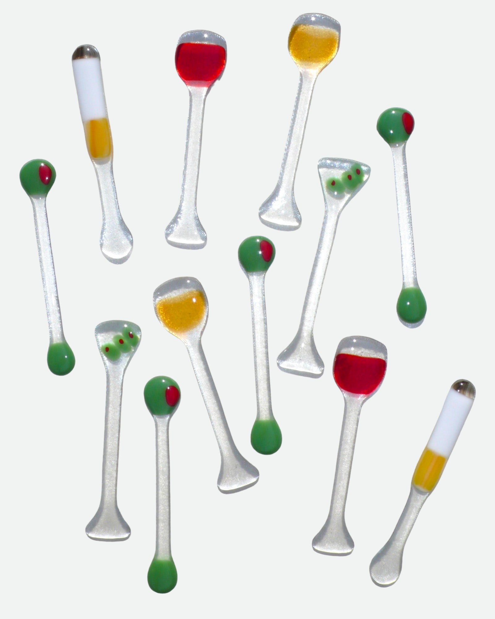 Make every hour Happy Hour! Handmade fused glass stirrer by Florida glass artist will make your drinks more Fun! Please note, each stirrer is handmade thus will be unique in shape, size, and colors.