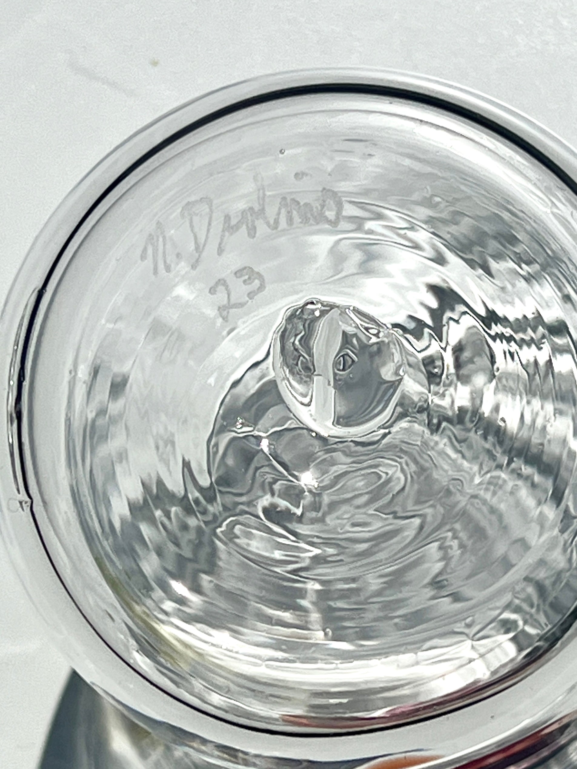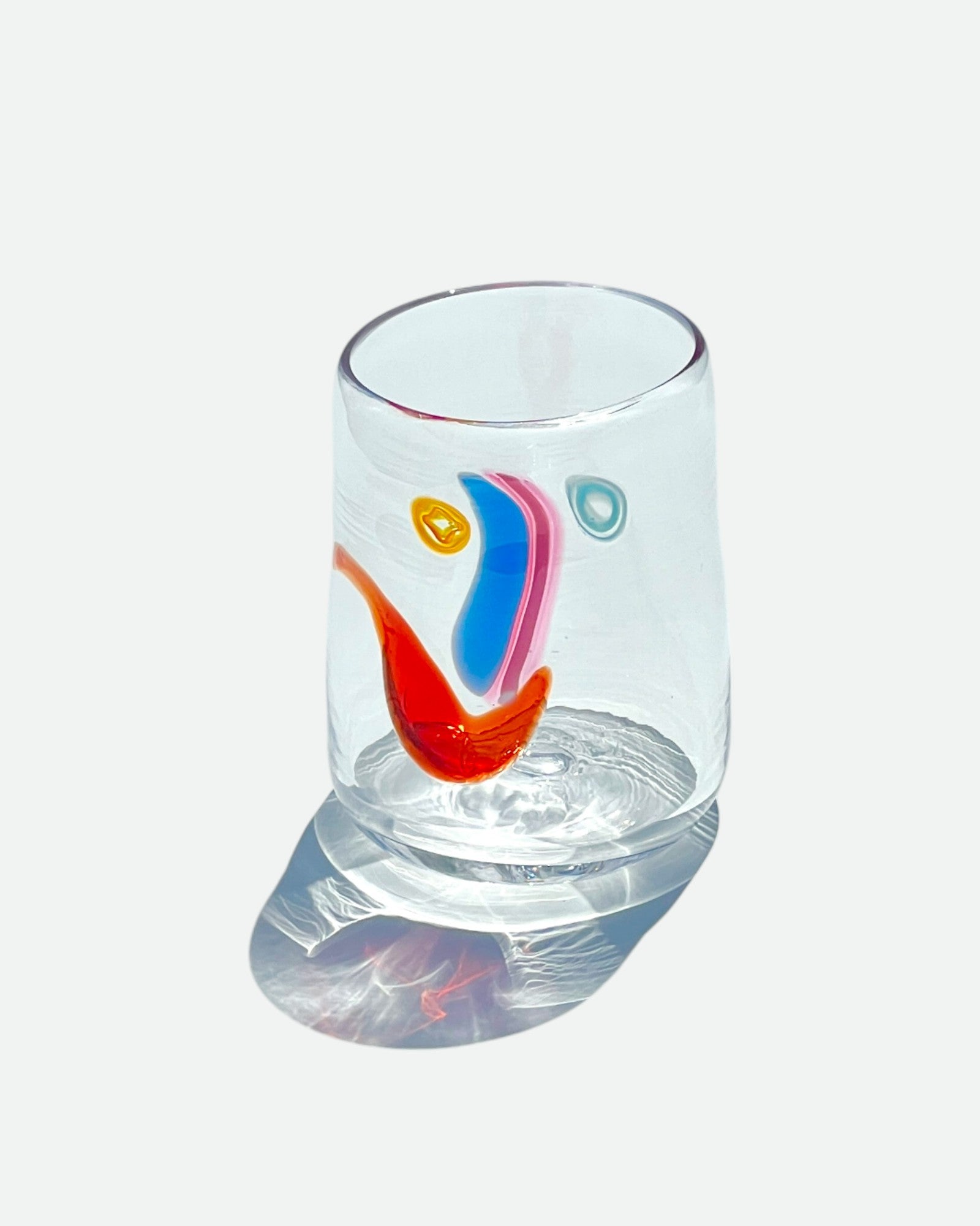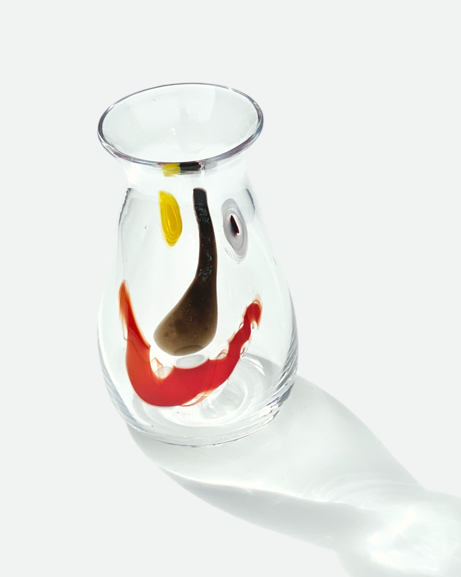 Who does want a cup that smiles?! Each one is hand-blown and has a unique face by Rhode Island artist Neal Drobnis x Degen. No two are alike! Choose your own Face Vassel! Signed at bottom.