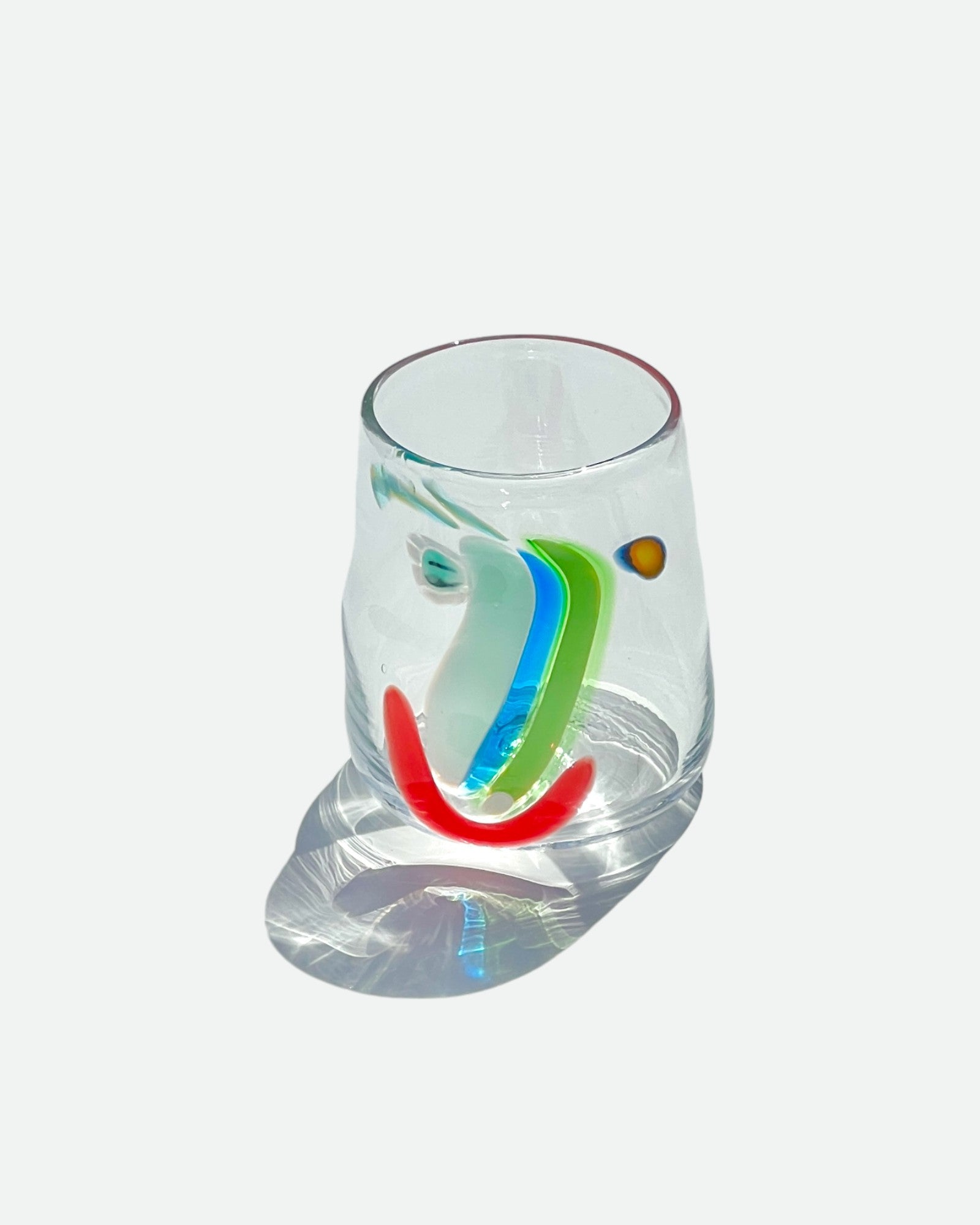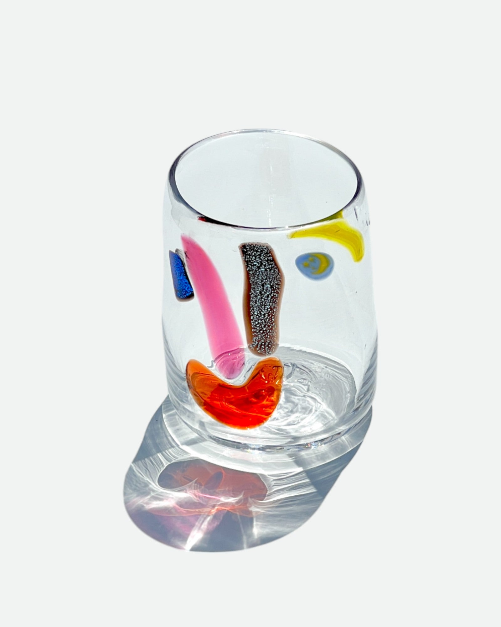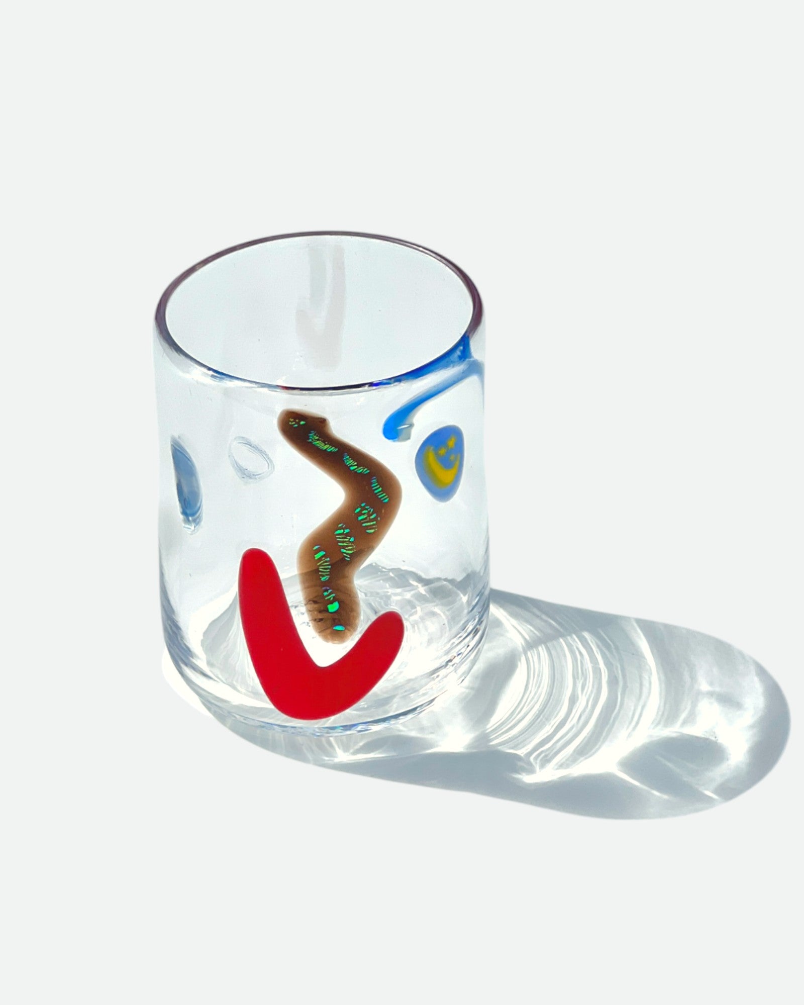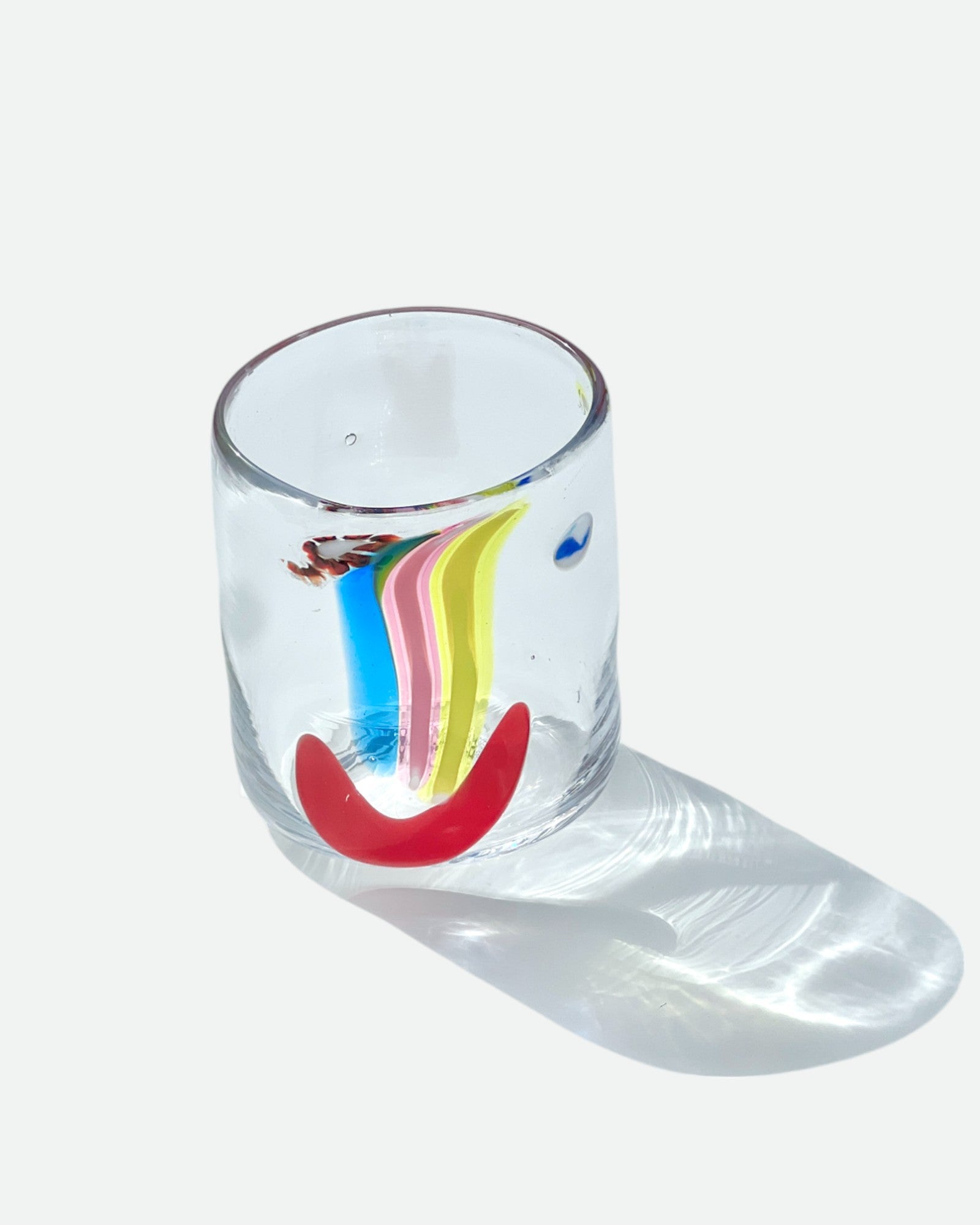 Who does want a cup that smiles?! Each one is hand-blown and has a unique face by Rhode Island artist Neal Drobnis x Degen. No two are alike! Choose your own Face Vassel! Signed at bottom.