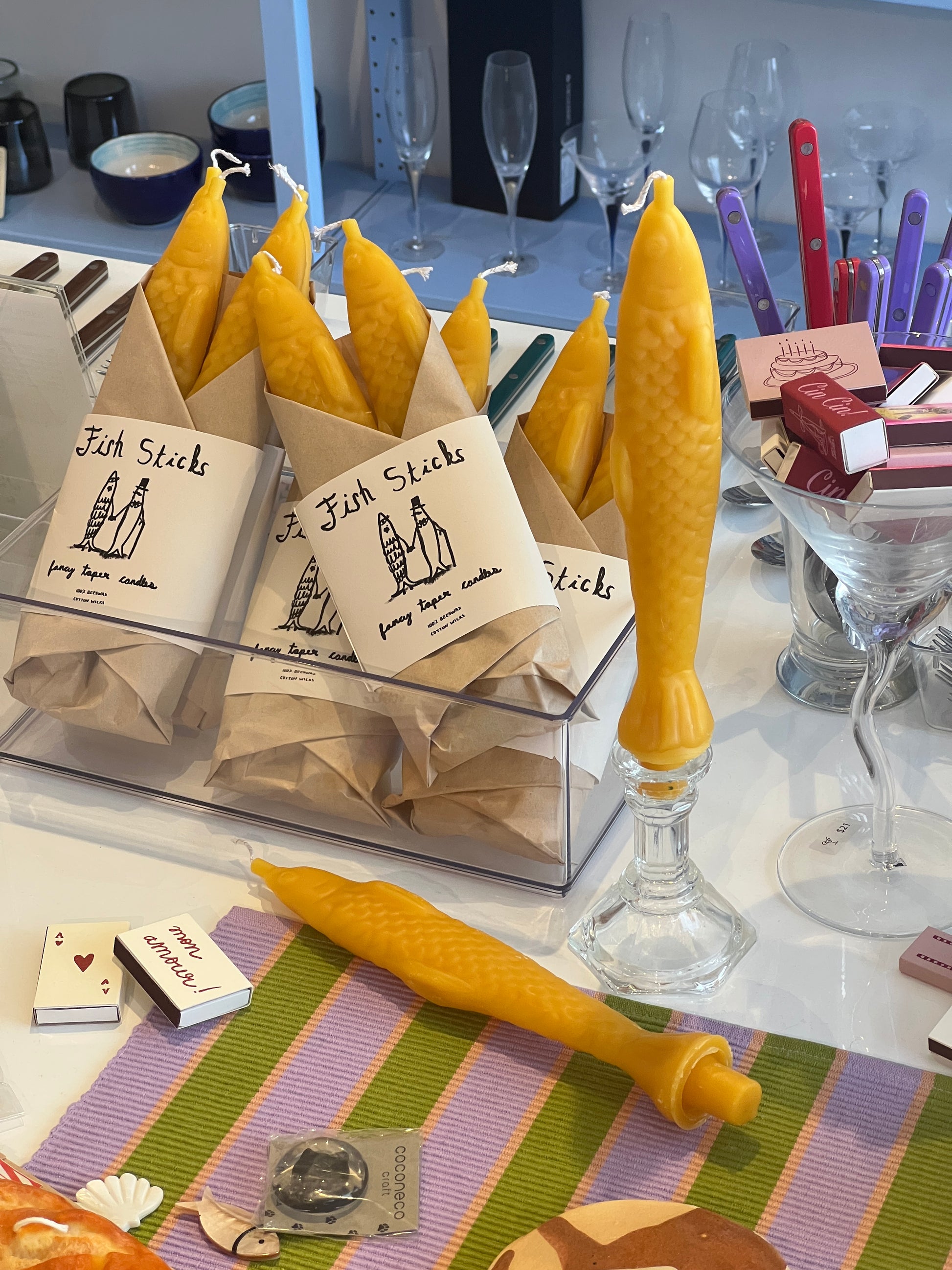 These fancy taper candles are made from beeswax and have a cotton wick and are perfect for your fish loving friends.