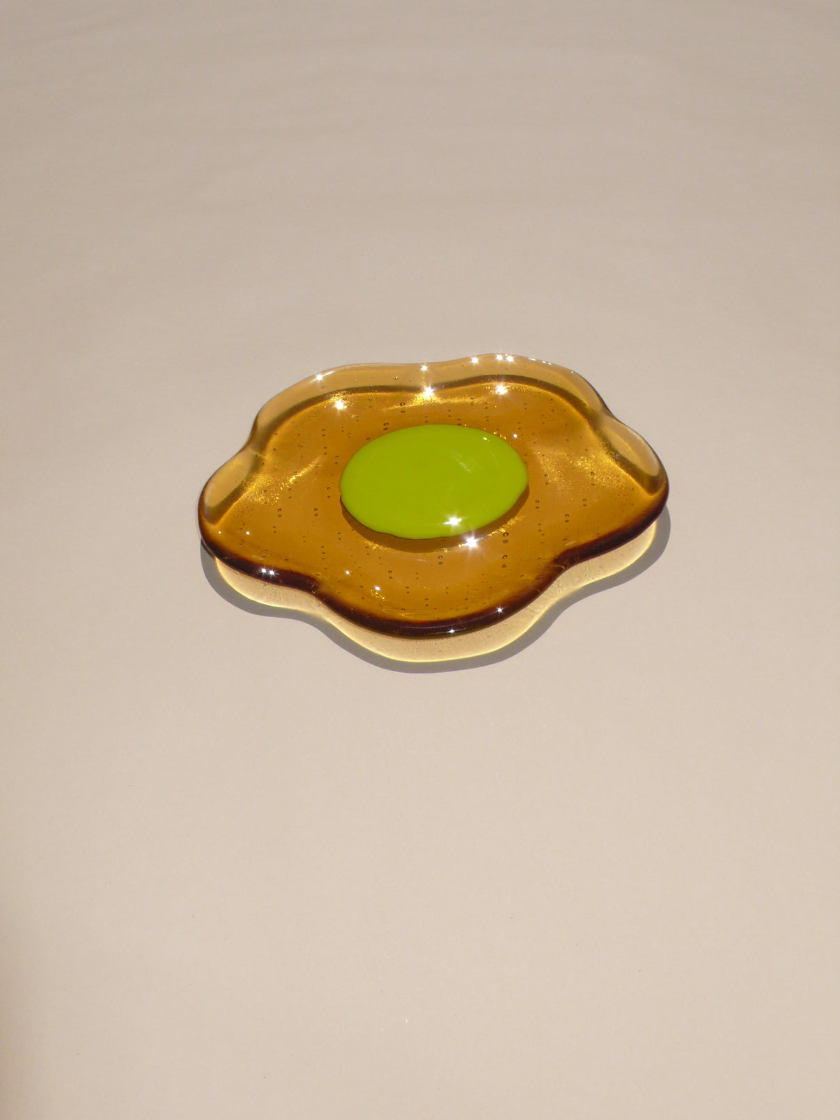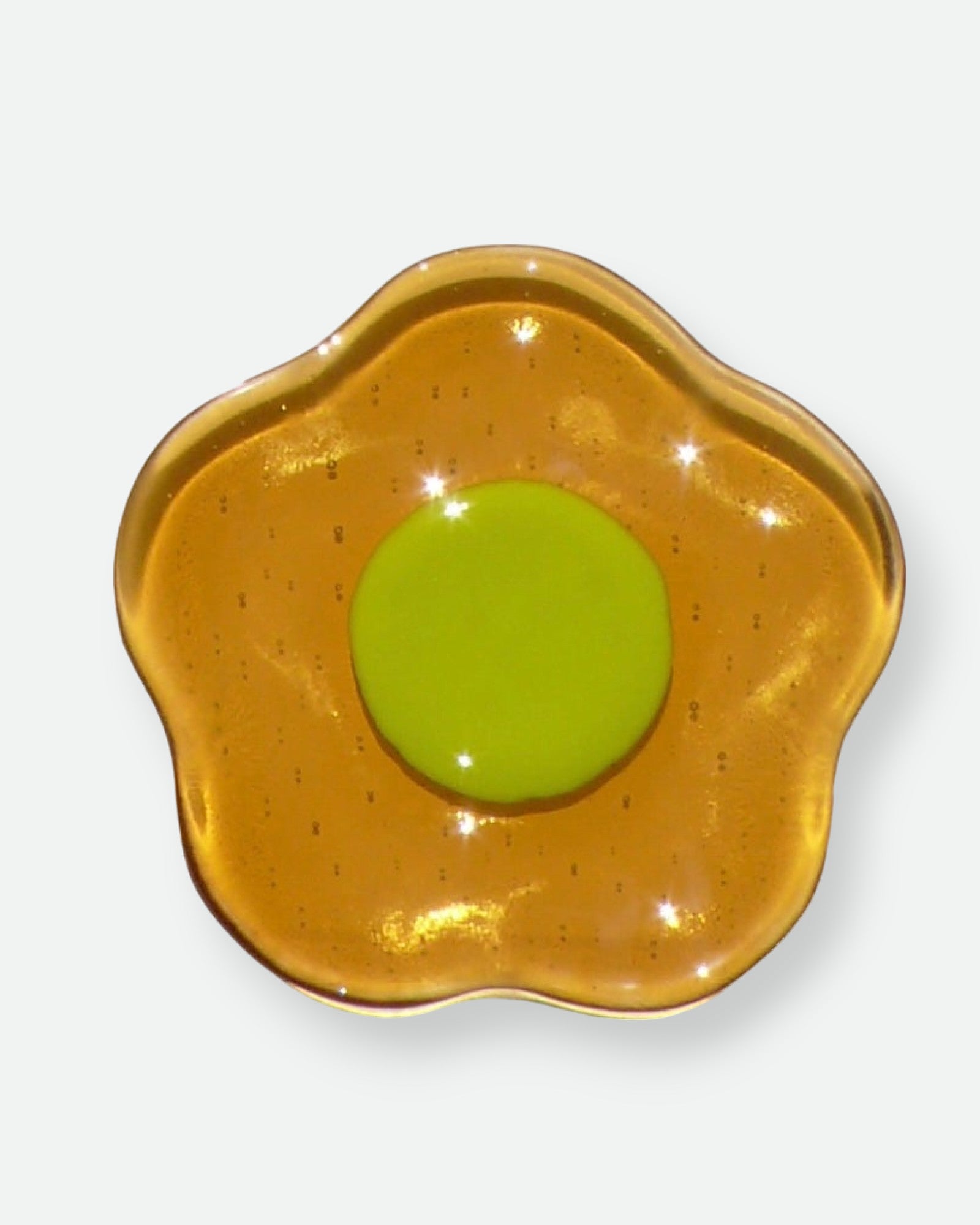 Flowers bloom on your dinner table! Handmade fused glass plate by Florida glass artist will make your food more Fun! Please note, each plate is handmade thus will be unique in shape, size, and colors.