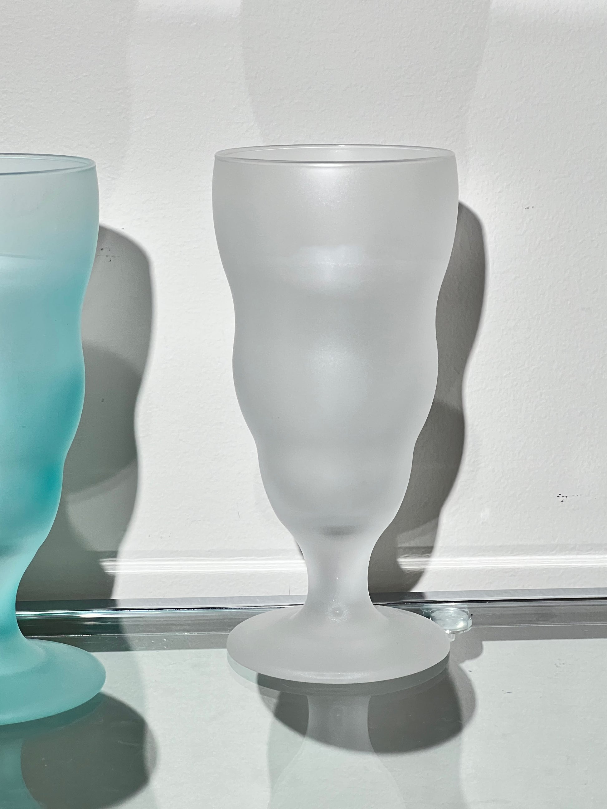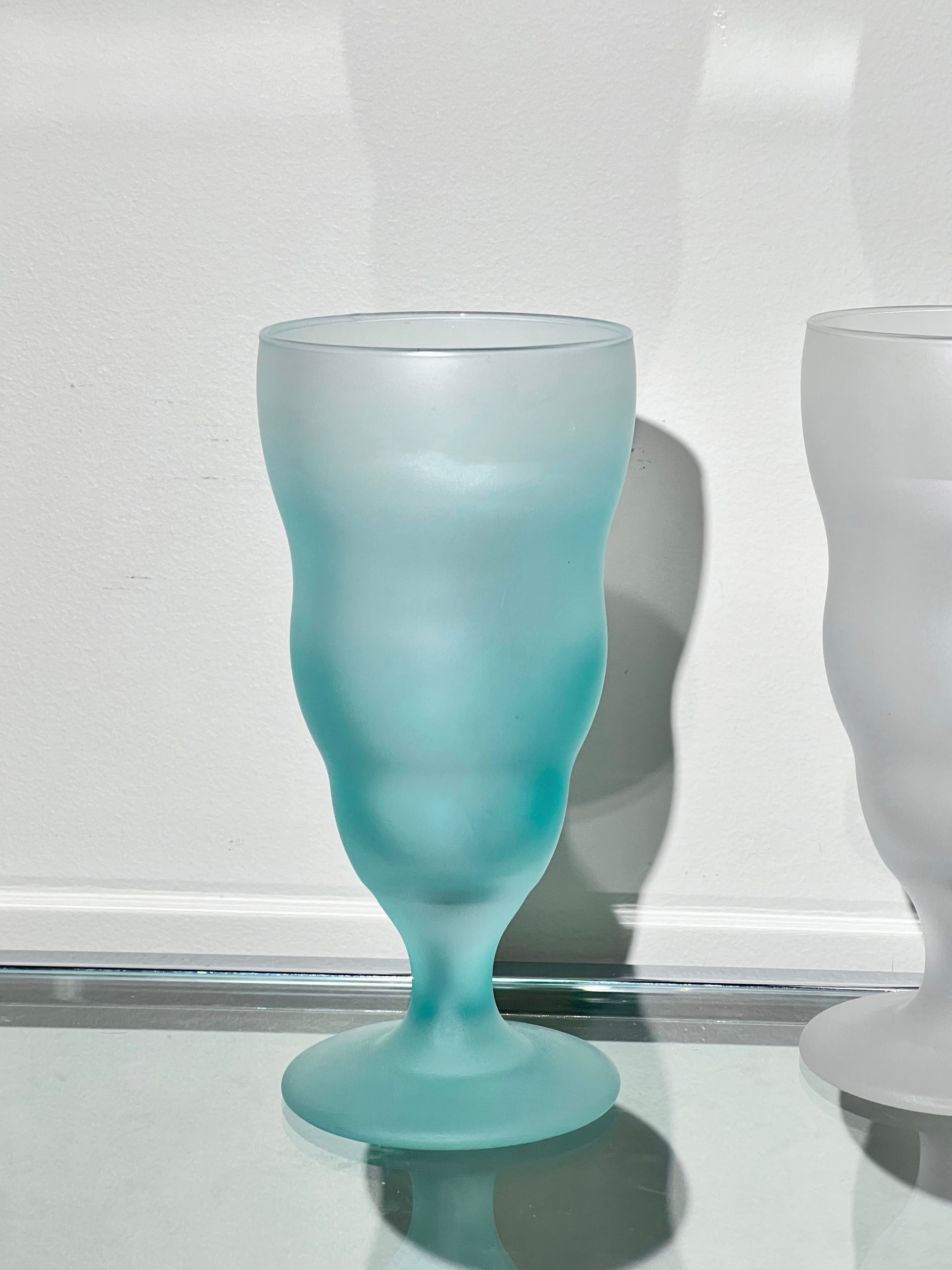 Condition: New in box with very light vintage wear due to the delicate nature of frosted glass