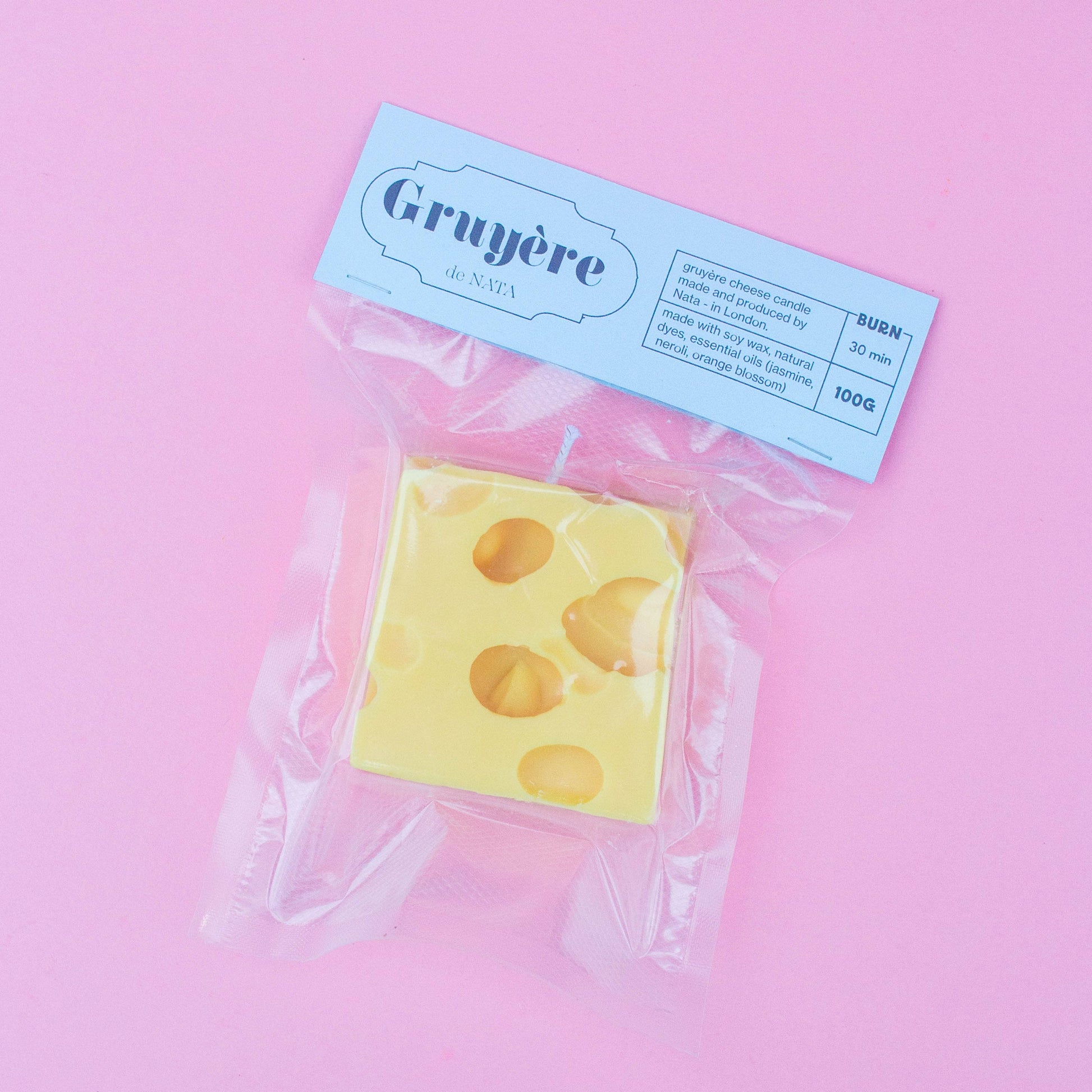 Gruyère (pronounced "groo-YAIR") is a cheese named after Gruyères a town in Switzerland. A perfect melting cheese candle by UK based sculptural candle artists Anna + Tatiana, good to grate & that also pairs well with wine. It pays tribute to a cheese that is pretty much perfect.