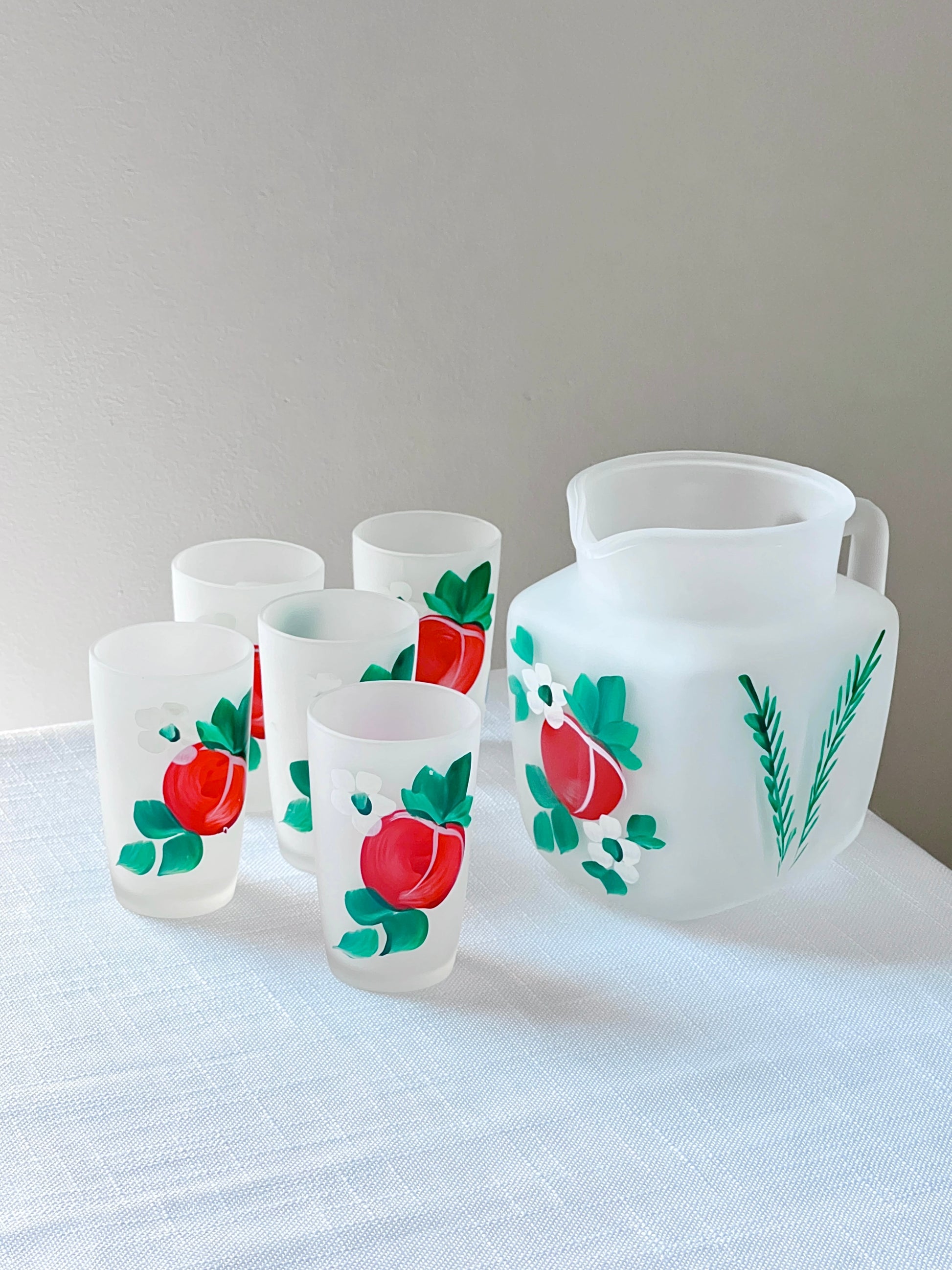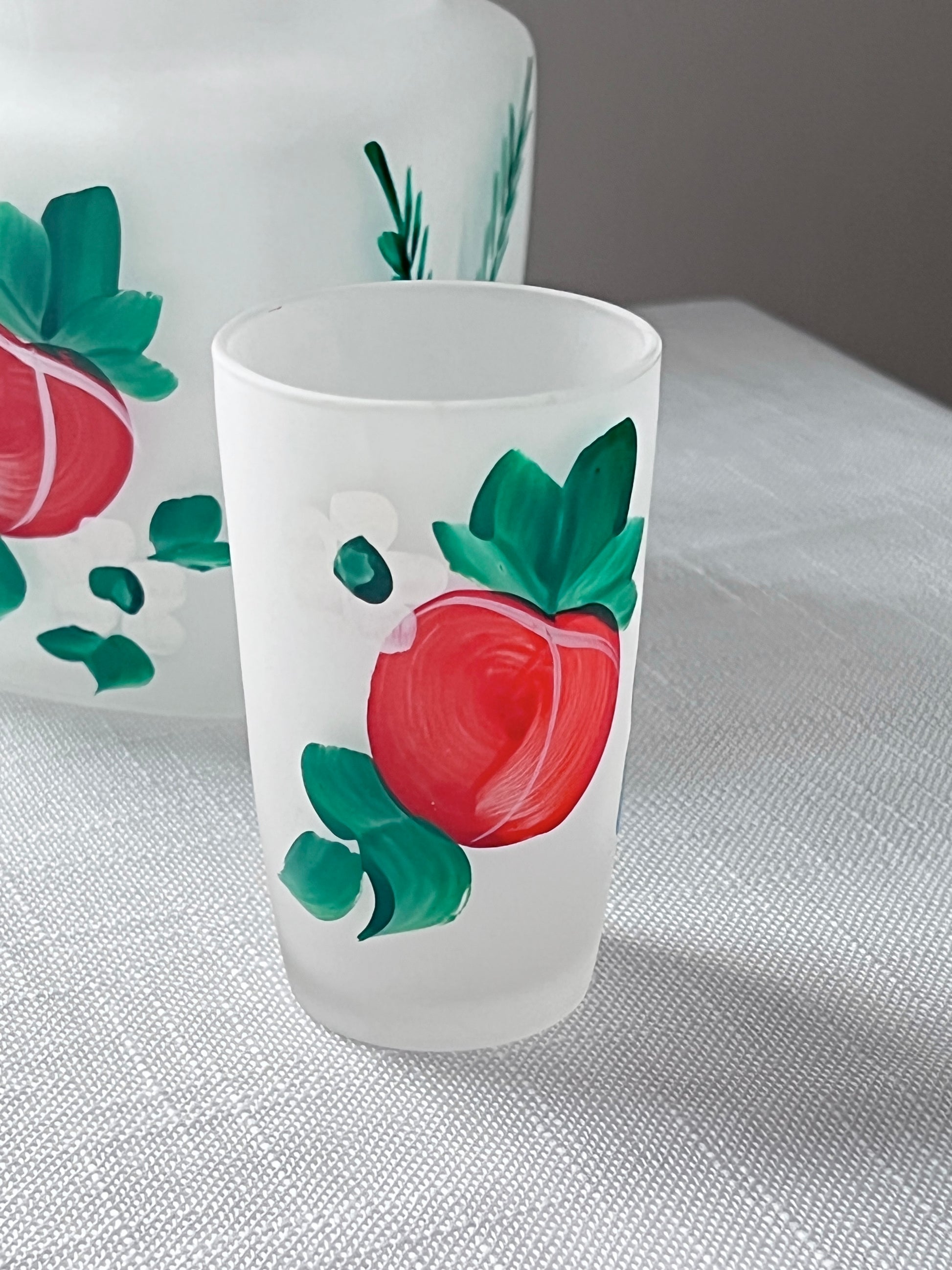 Dimensions: Pitcher 4''W x 6''D x 5.75''H ; Glass 2.25''W x 3.75''H