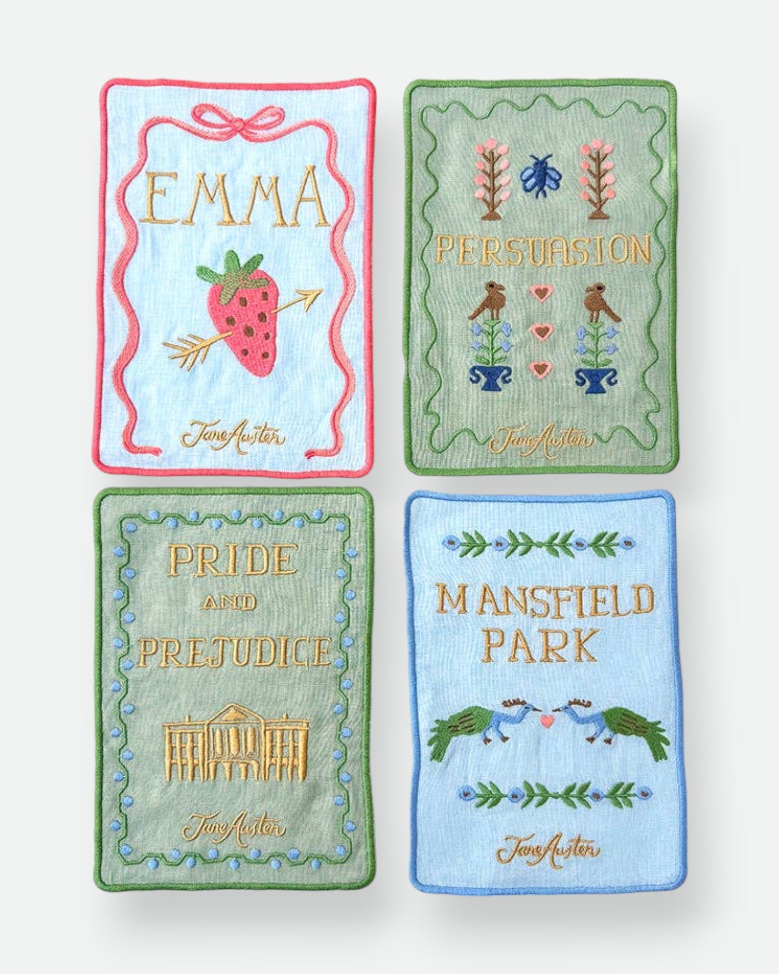 Details Elevate your cocktail hour with our Jane Austen Cocktail Napkins, perfect for any book lover. This set of four features iconic novels from the beloved author, adding a touch of literary sophistication to your gatherings.