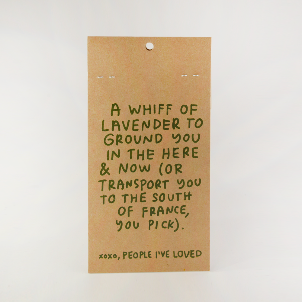 A whiff of lavender to ground you in the here & now (or transport you to the south of France—you pick). Designed by Oakland, CA art studio.