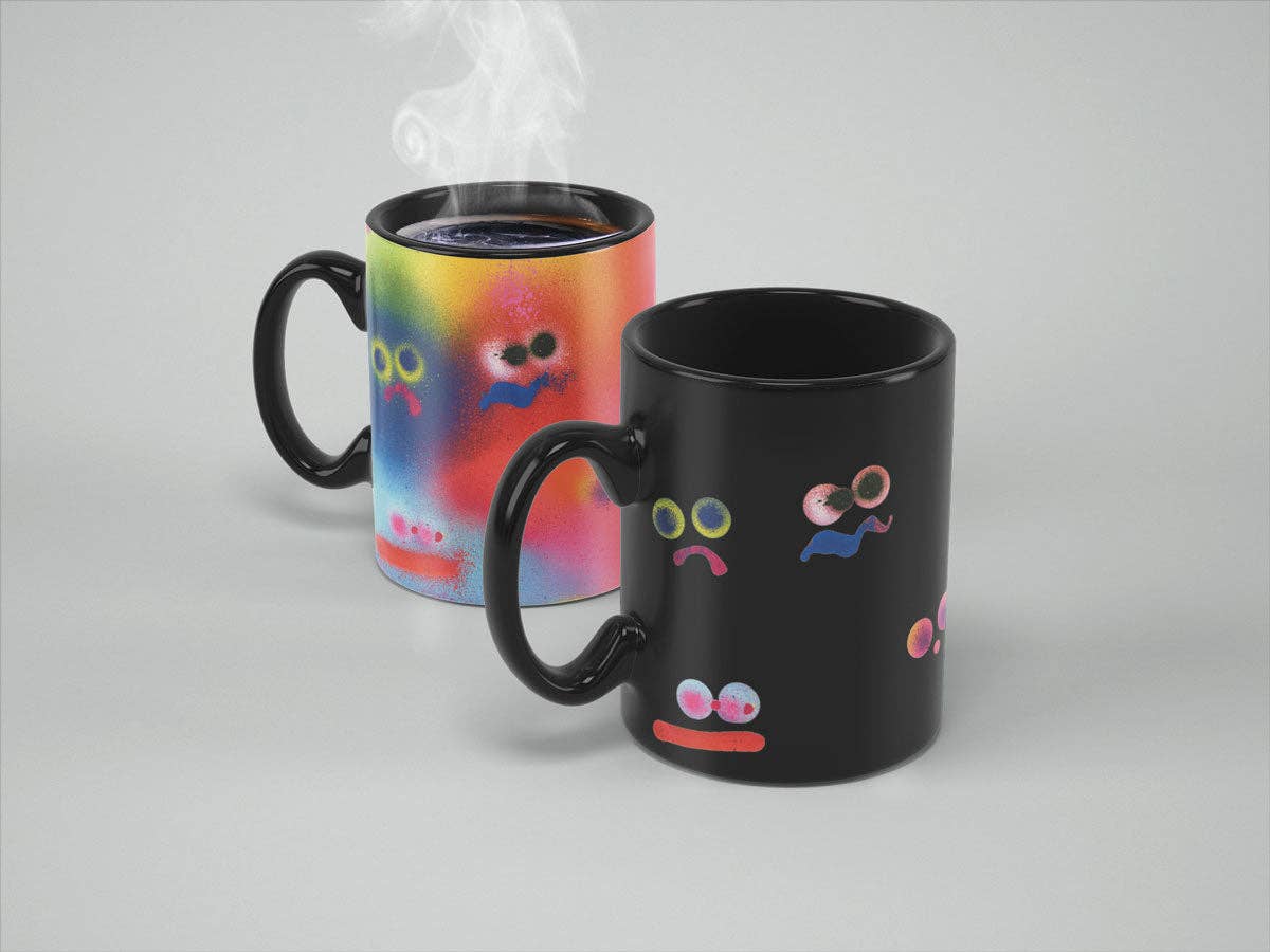 The friendliest mug ever by UK born, NYC based artist Jon Burgerman. It's magic! When you add hot liquid in into the mug, watch all your new friends appear!