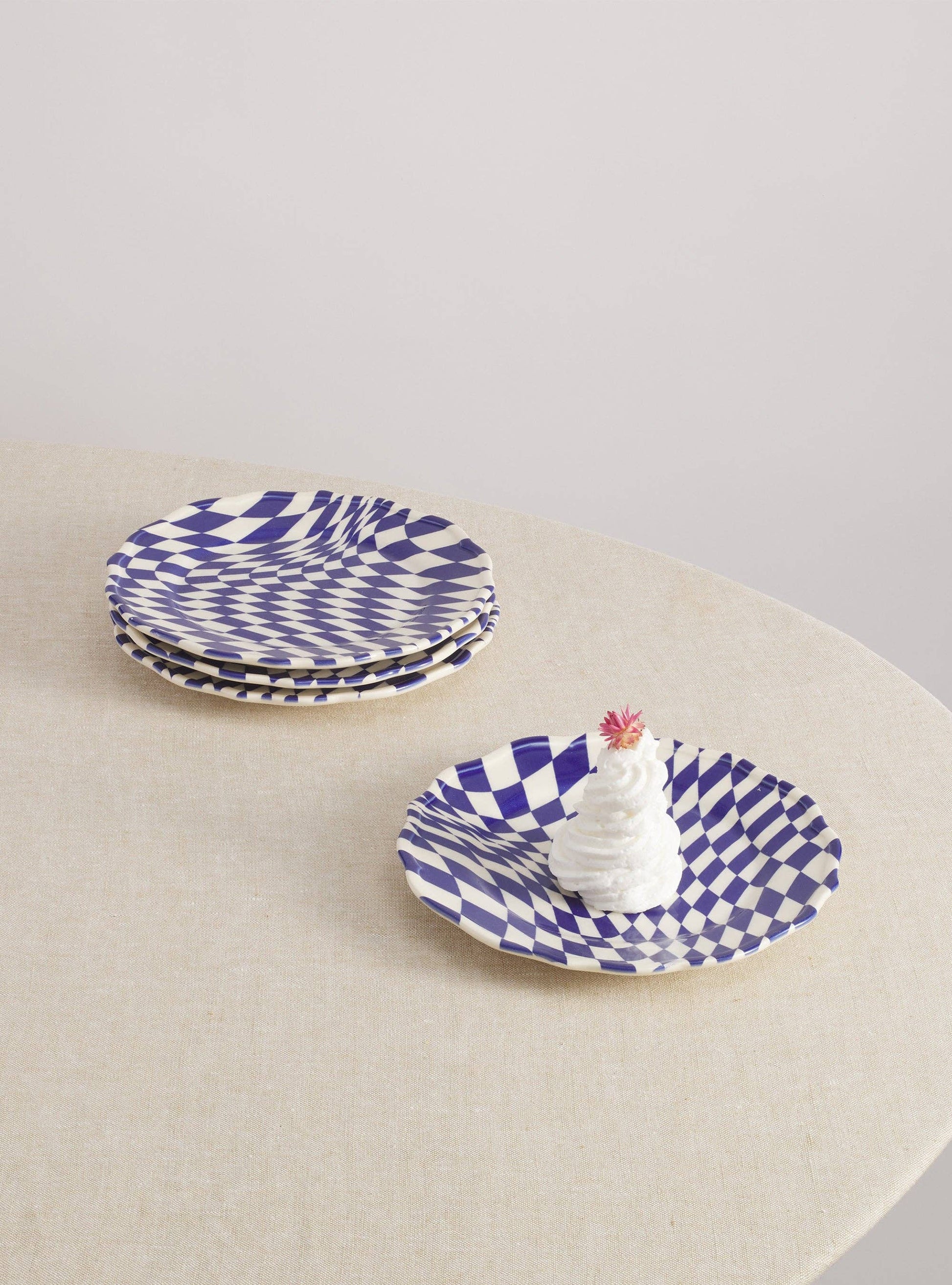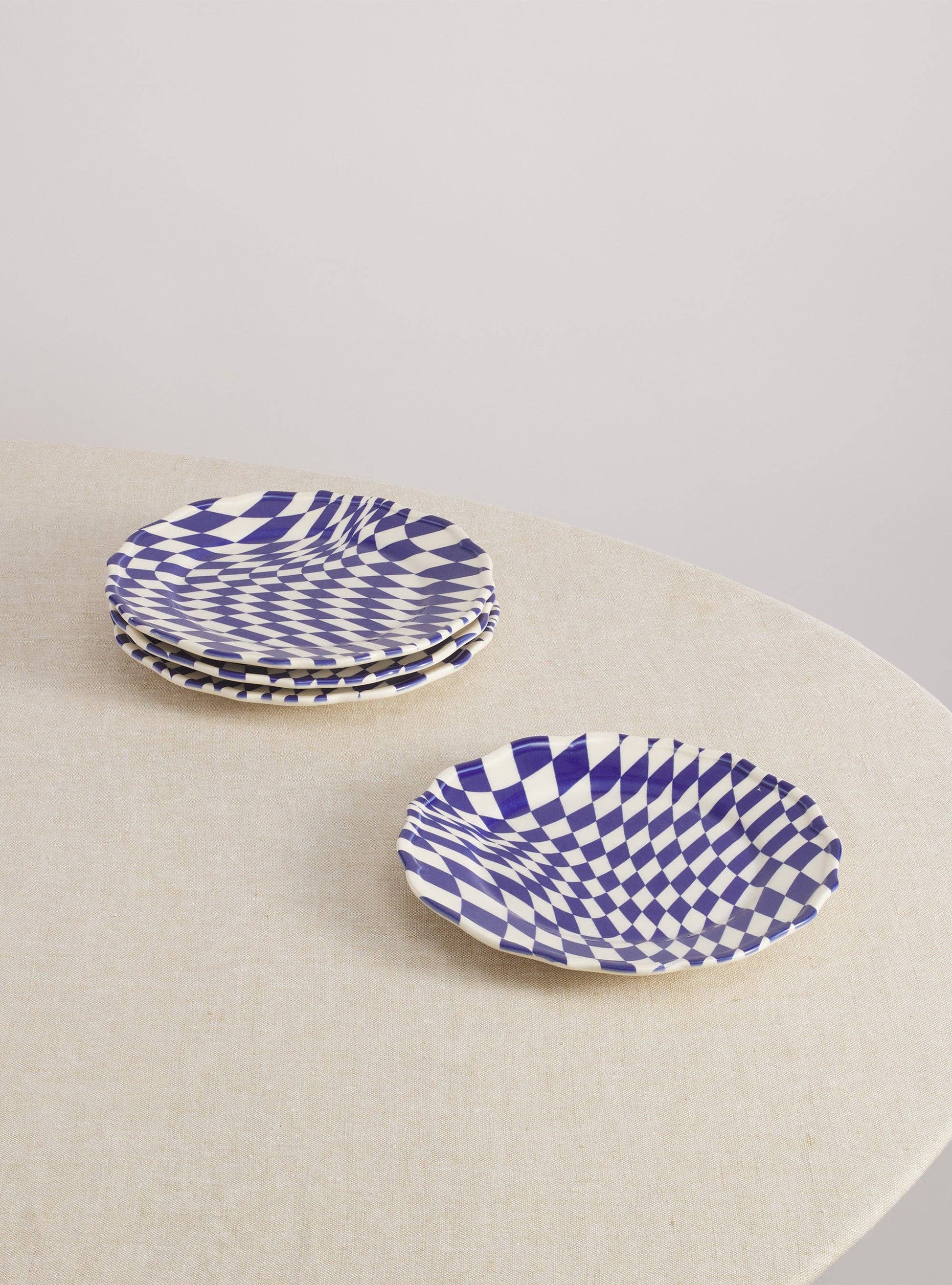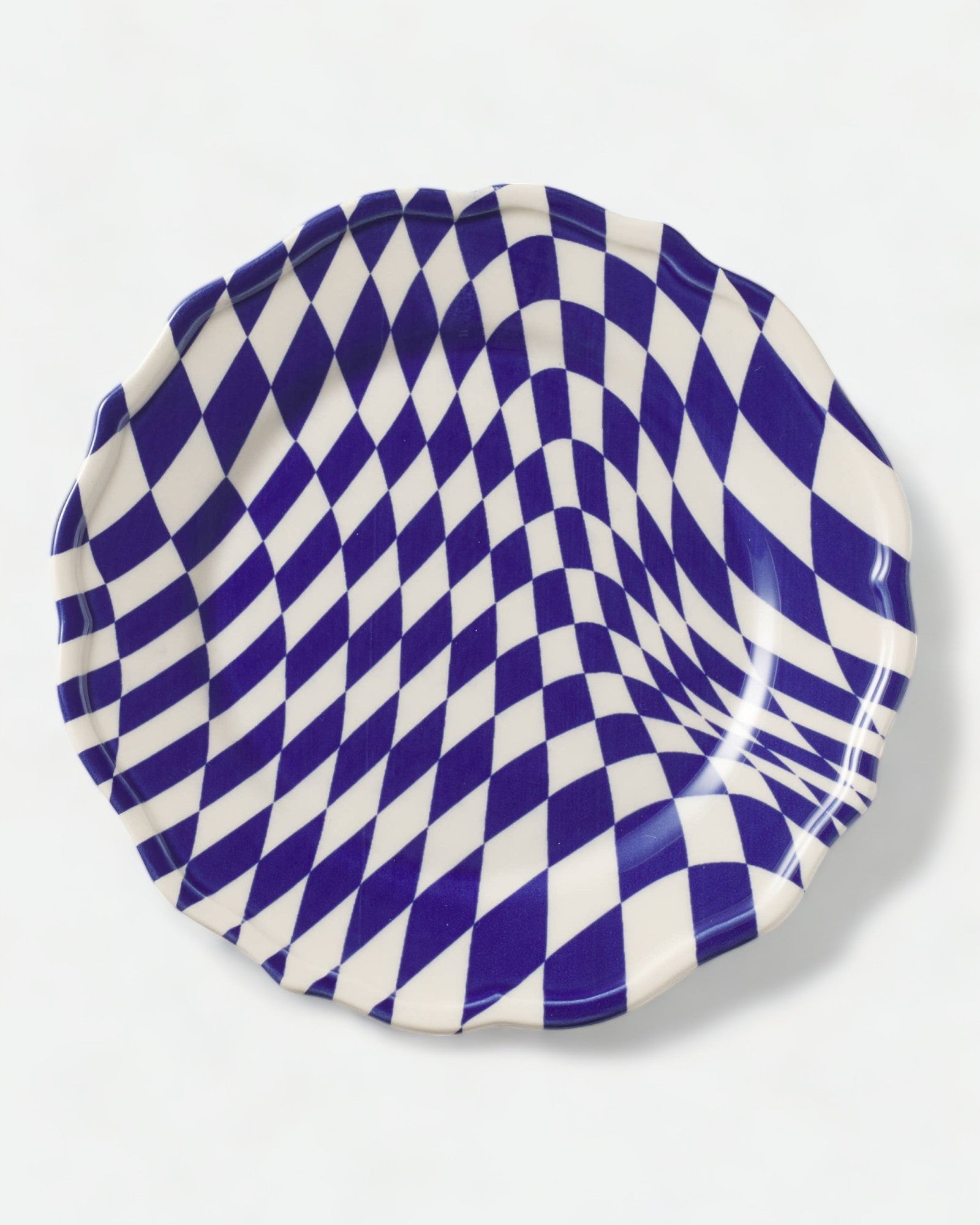 Handmade and hand-painted ceramic earthenware by Maison Madison, designed in New York and made in Portugal. The Distorted pattern of Mafalda Plate will sure make your apple pie look more interesting.