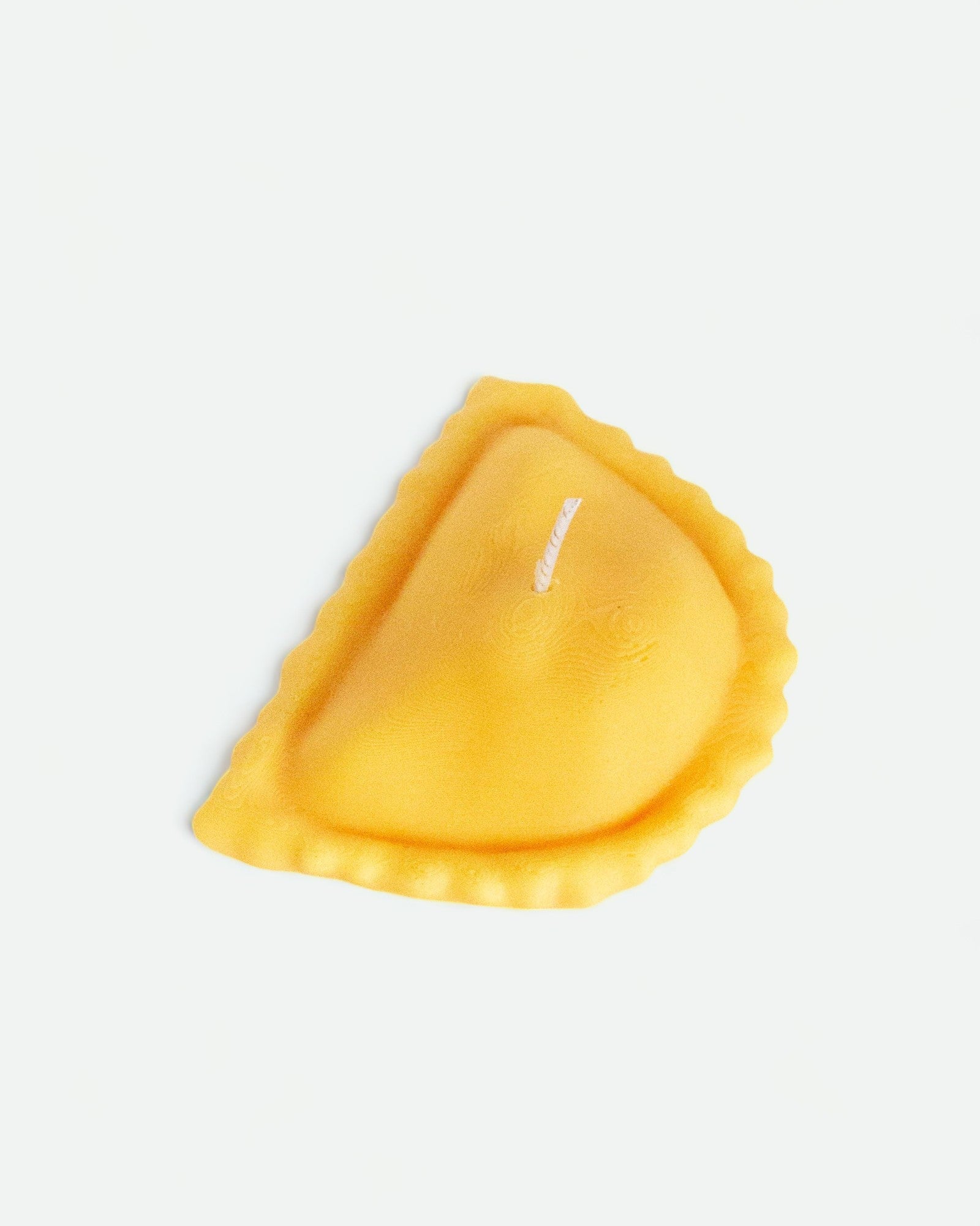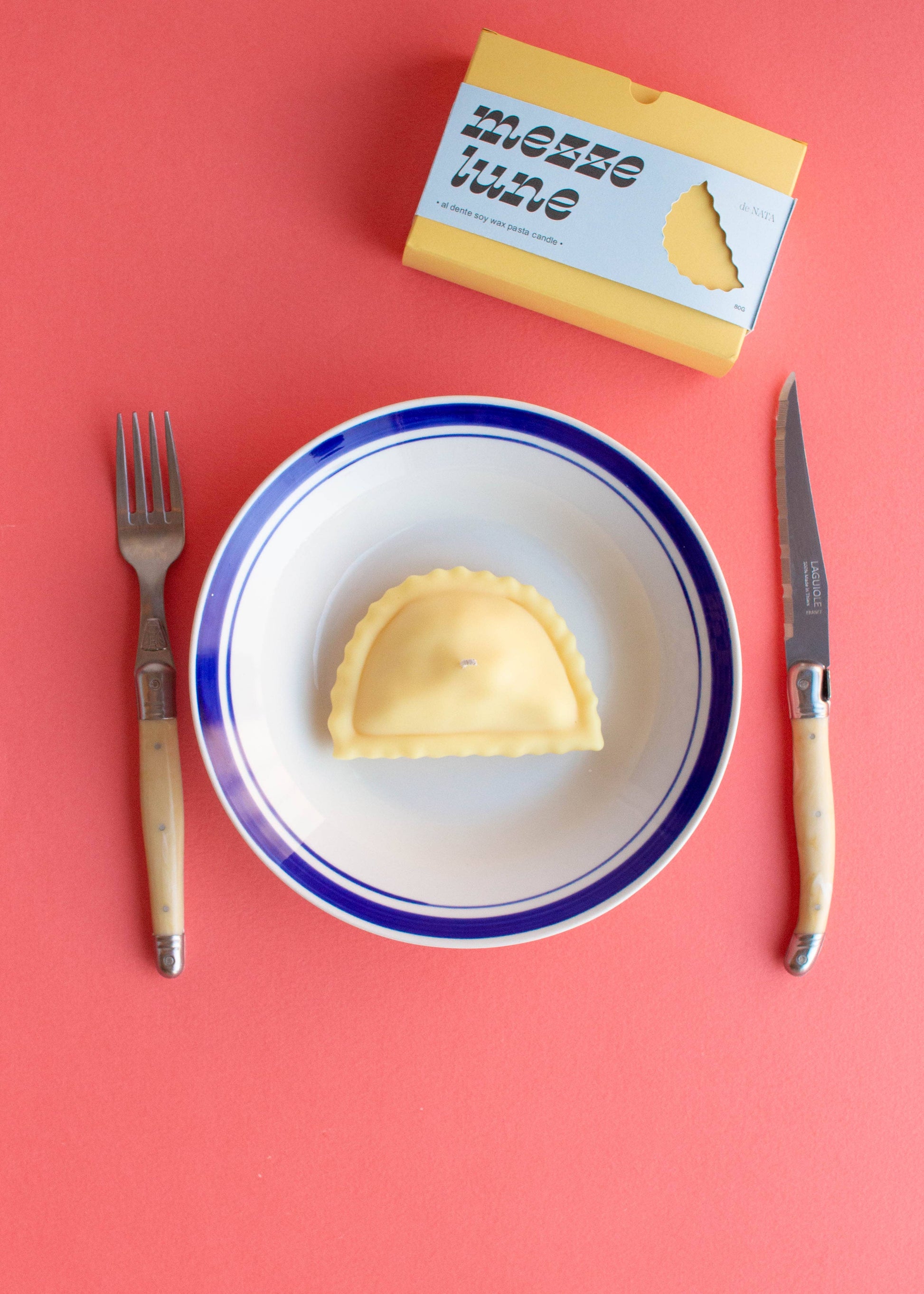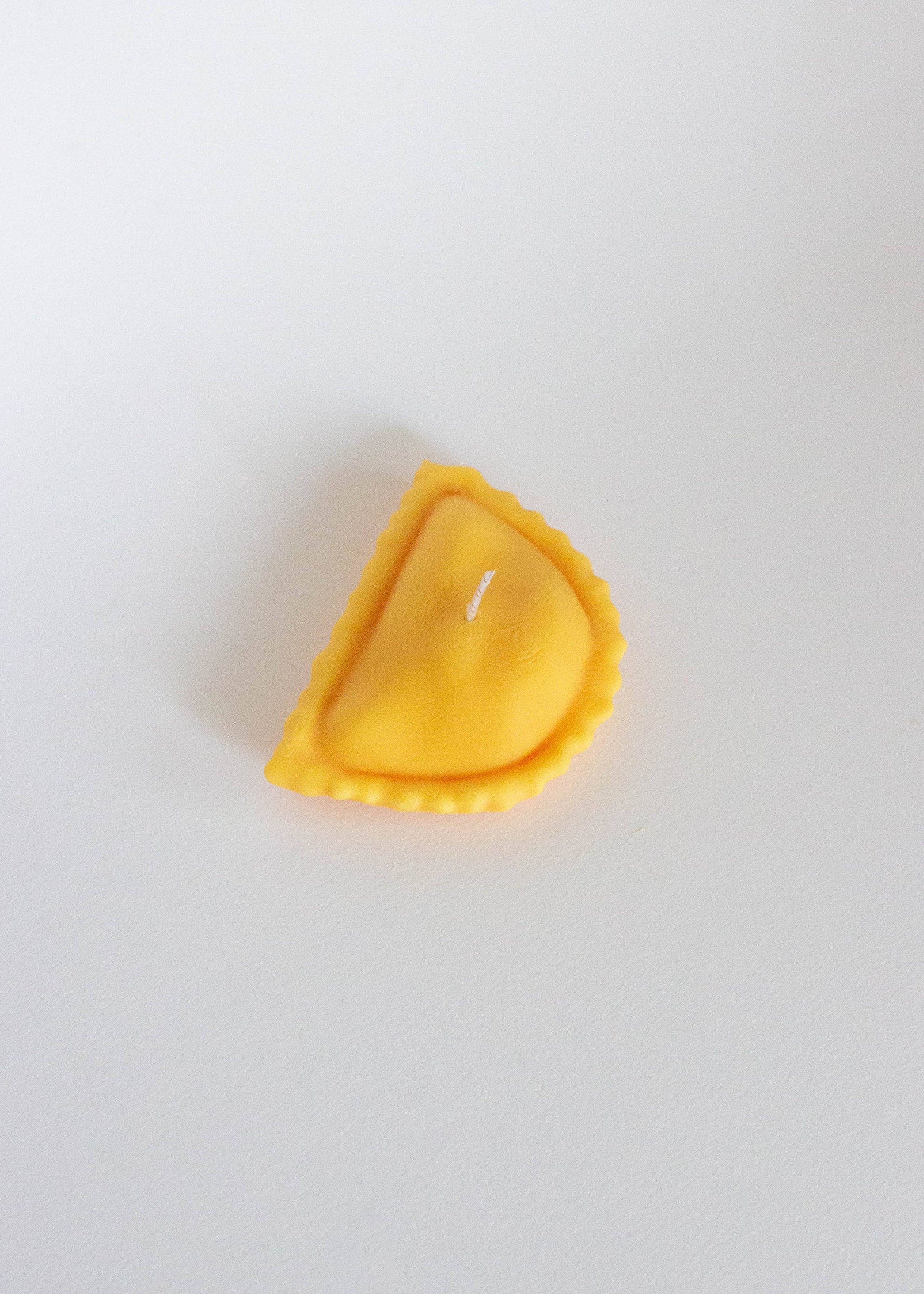 The art of pasta making has been passed down through the generations of artists' Italian friends. Now, from Nonnas to Nata, the UK based sculptural candle artists Anna + Tatiana bring you the Mezzelune candle. This pasta is shaped like a half moon, with curved edges and is folded over and usually contains a scrumptious filling. Careful - your dinner party guests may find the more-ish aesthetic good enough to eat. Careful - your dinner party guests may find the more-ish aesthetic good enough to eat.