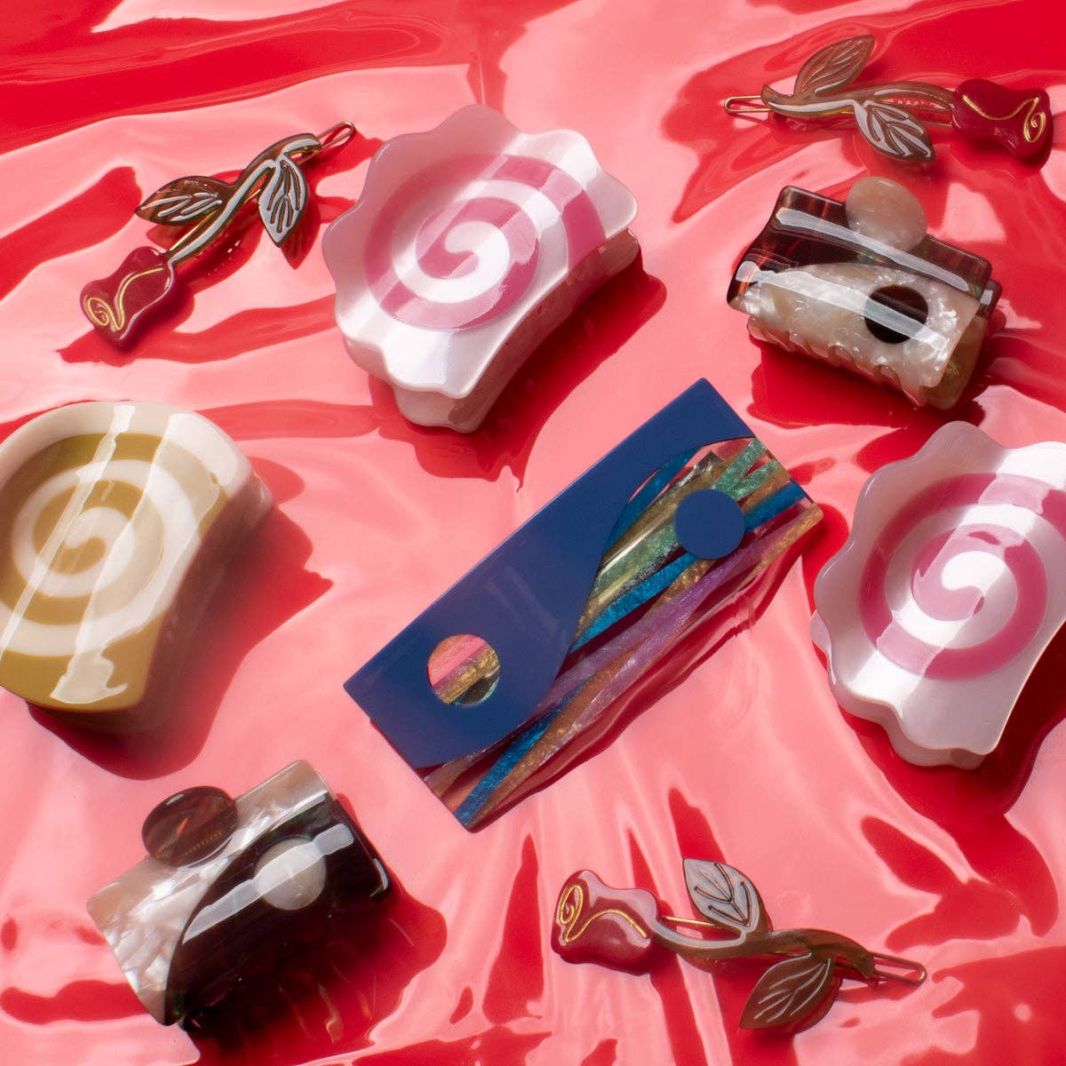 *Please note that due to the nature of the material, each hair accessory will have little differences in color and pattern. Each hair accessory is made from individually cut pieces of cellulose acetate. Each one is unique!