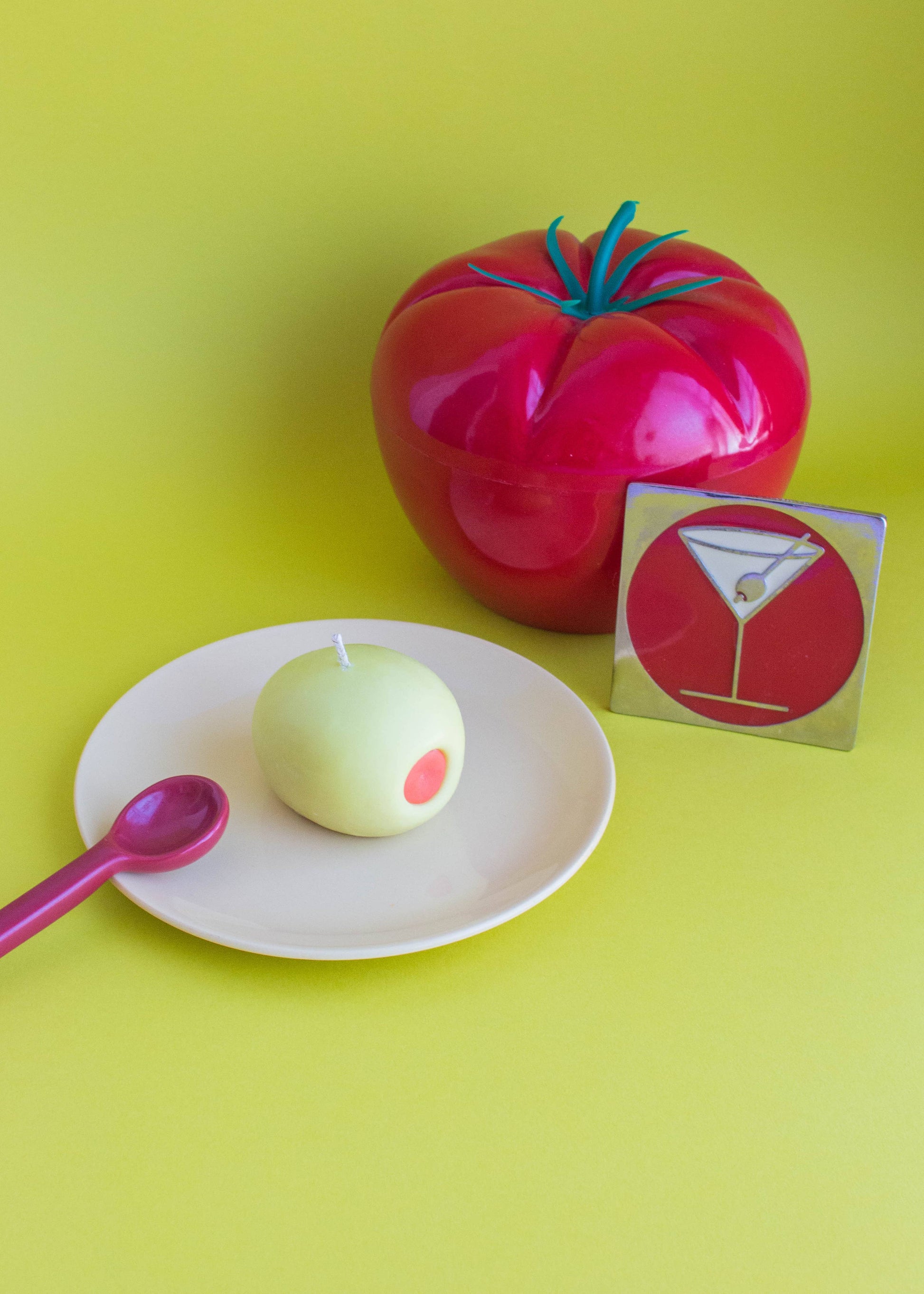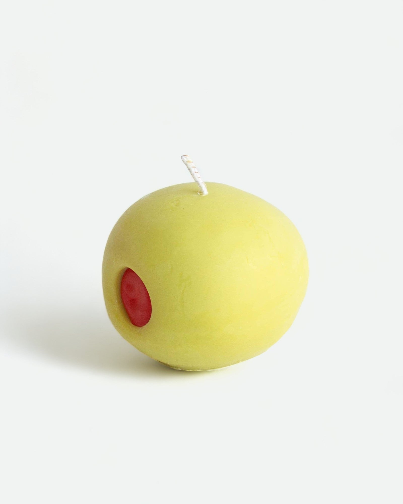 Meet Olive candle by UK based sculptural candle artists Anna + Tatiana: this oversized decor piece is bound to become your new favourite thing! Shaped like everyone’s favourite Mediterranean treat it’s truly the perfect addition to your bar cart, dinner party - or anywhere you wish really!