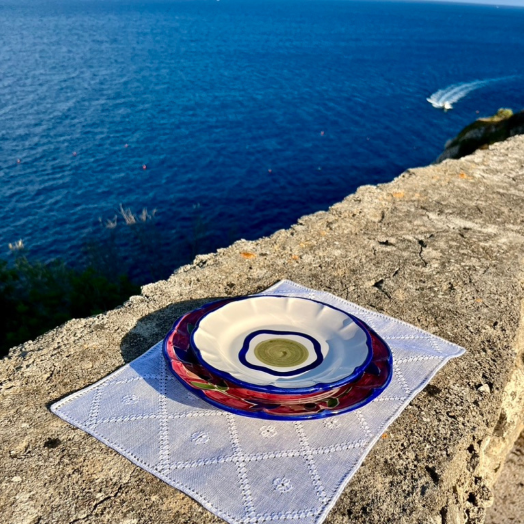 Handmade and hand painted on the Amalfi Coast, Italy, no two pieces are alike, may vary slightly in color, shape and/or size.