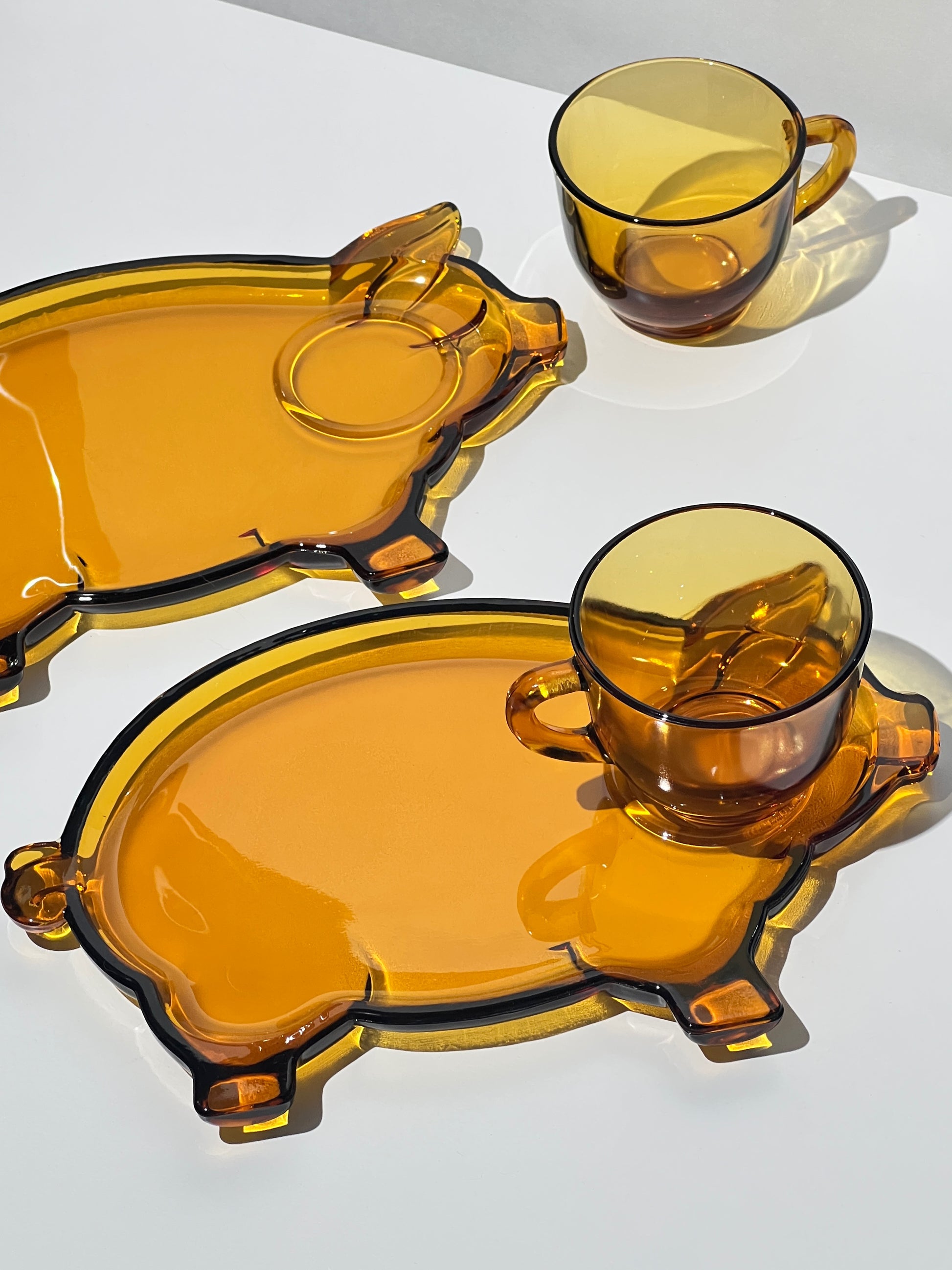 Dimensions: Cup 3.2”W x 2.5”H; plate 10”W x 6.5”D