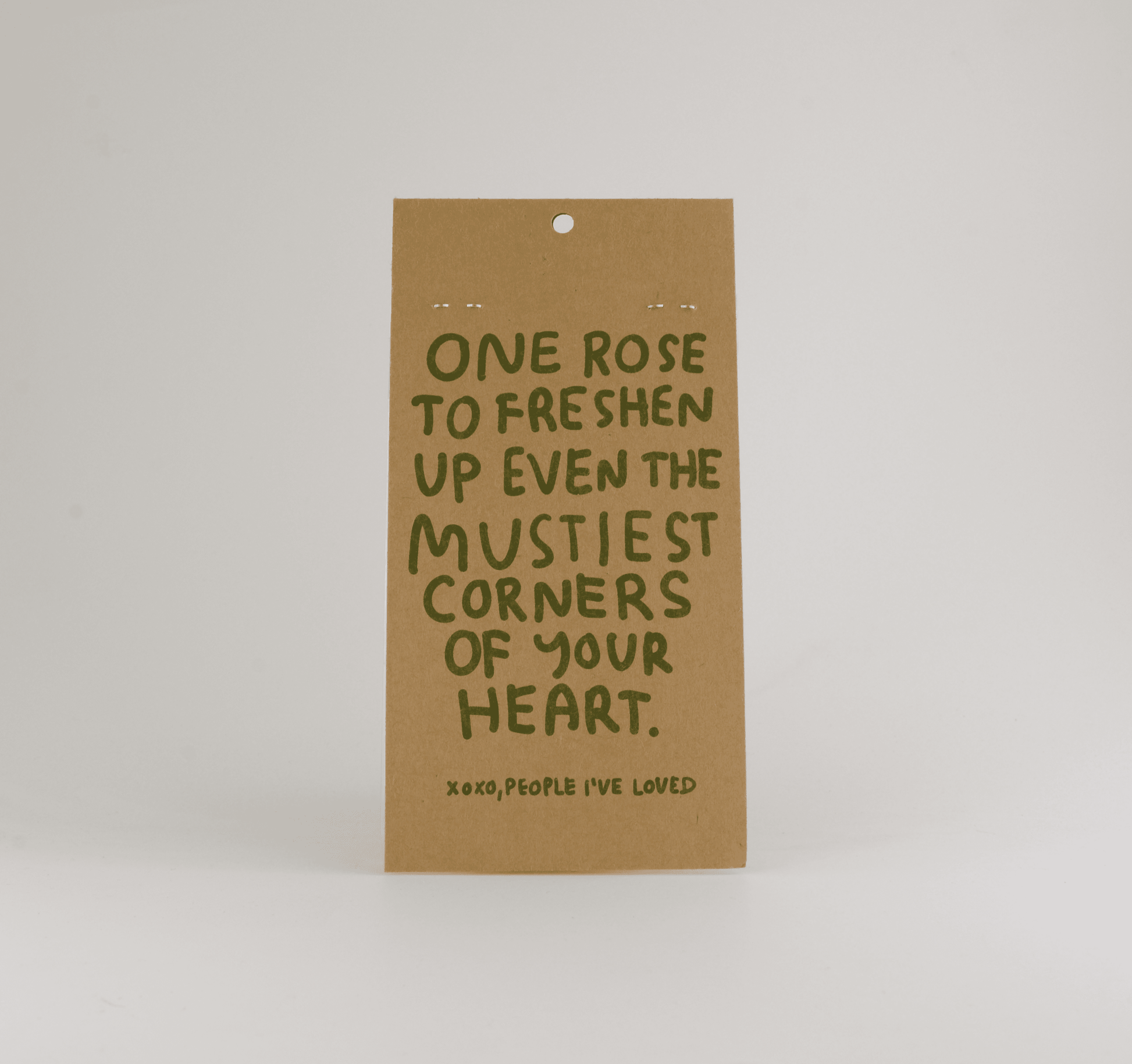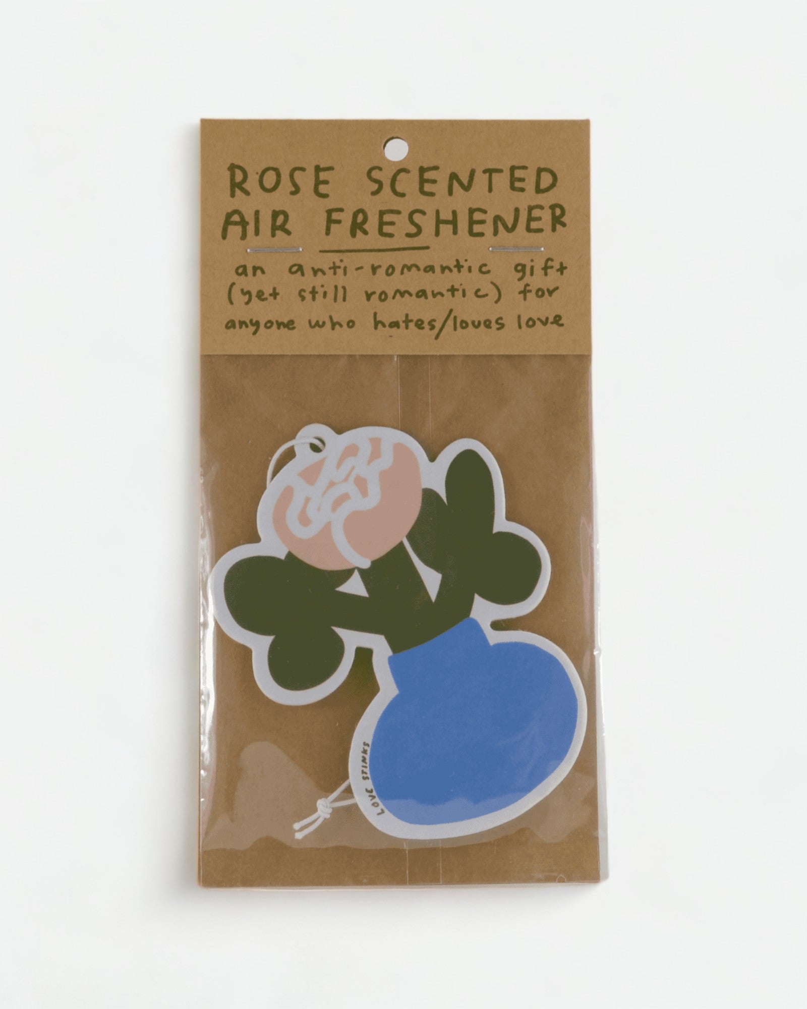 We said it: Love Stinks. From the mustiest corners of our hearts to yours, this air freshener makes a great gift for the romantic / anti-romantic person in your life. Hang it anywhere that needs a little freshening up—it smells like a rose! Designed by Oakland, CA art studio People I’ve Loved.