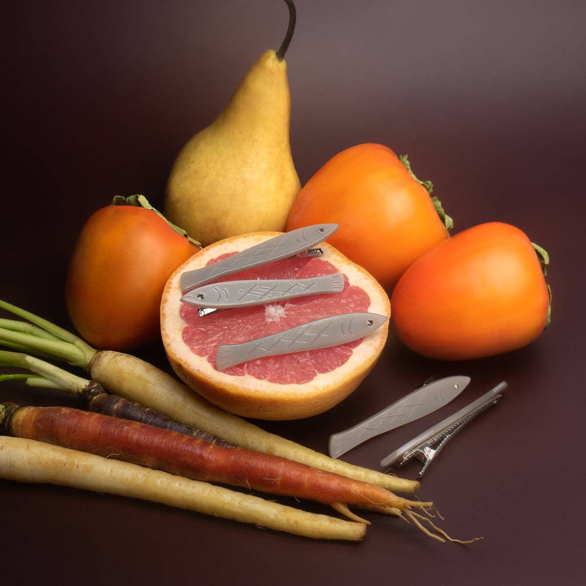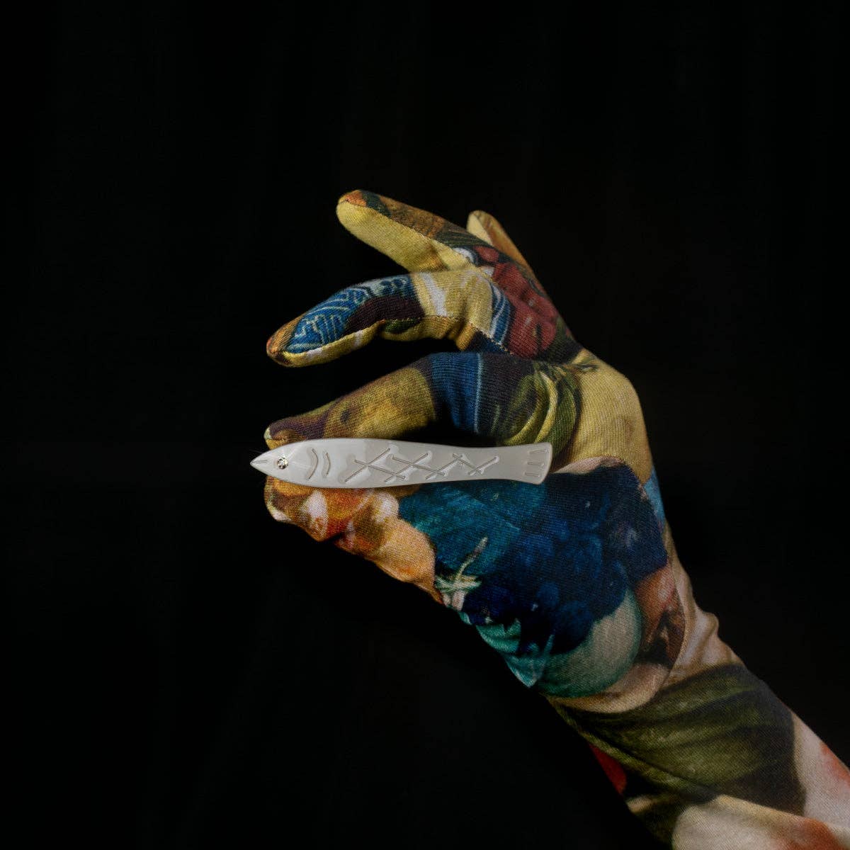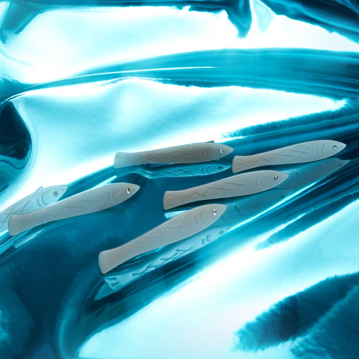 A pair of silvery sardines, with delicate details and the perfect amount of sparkle!