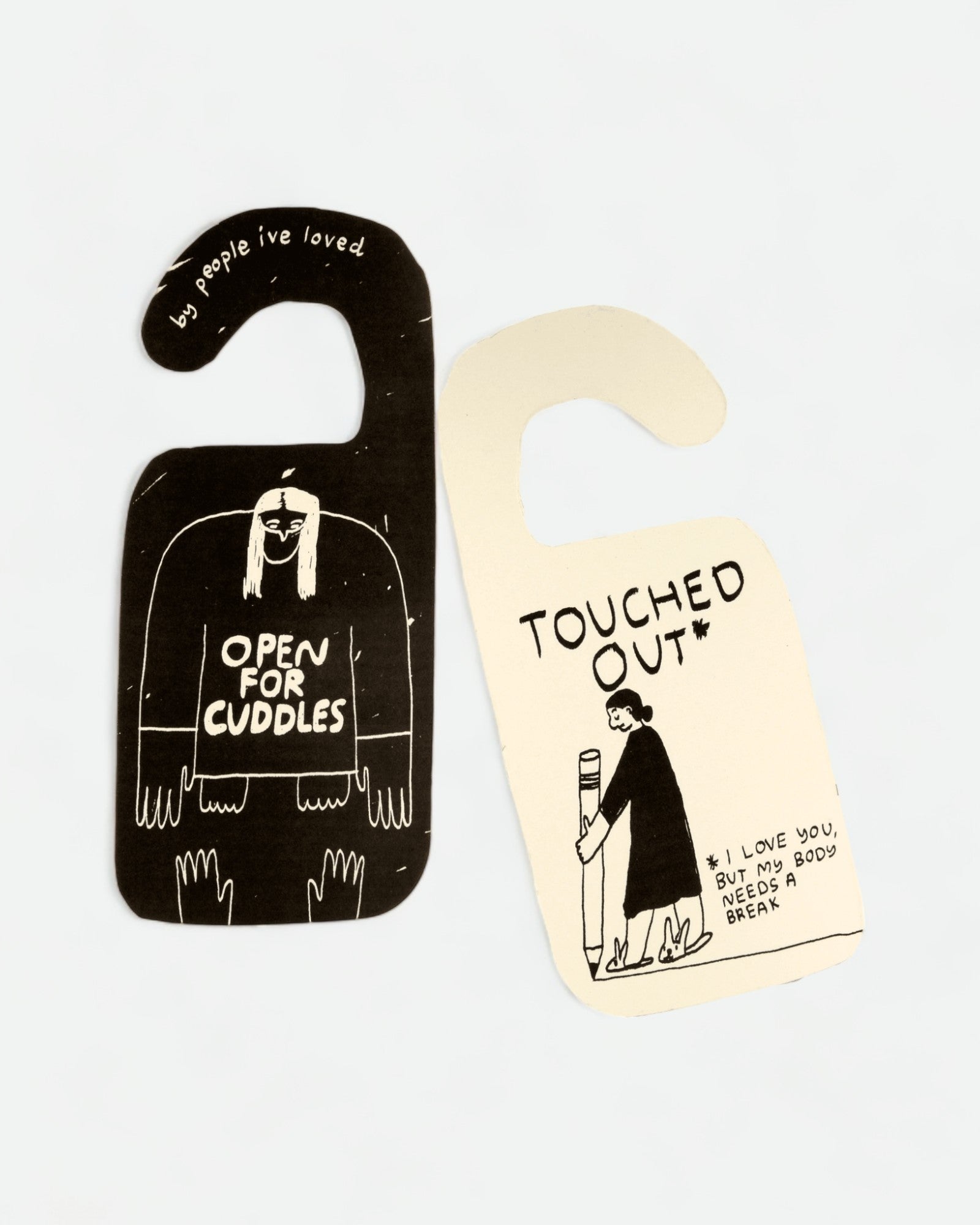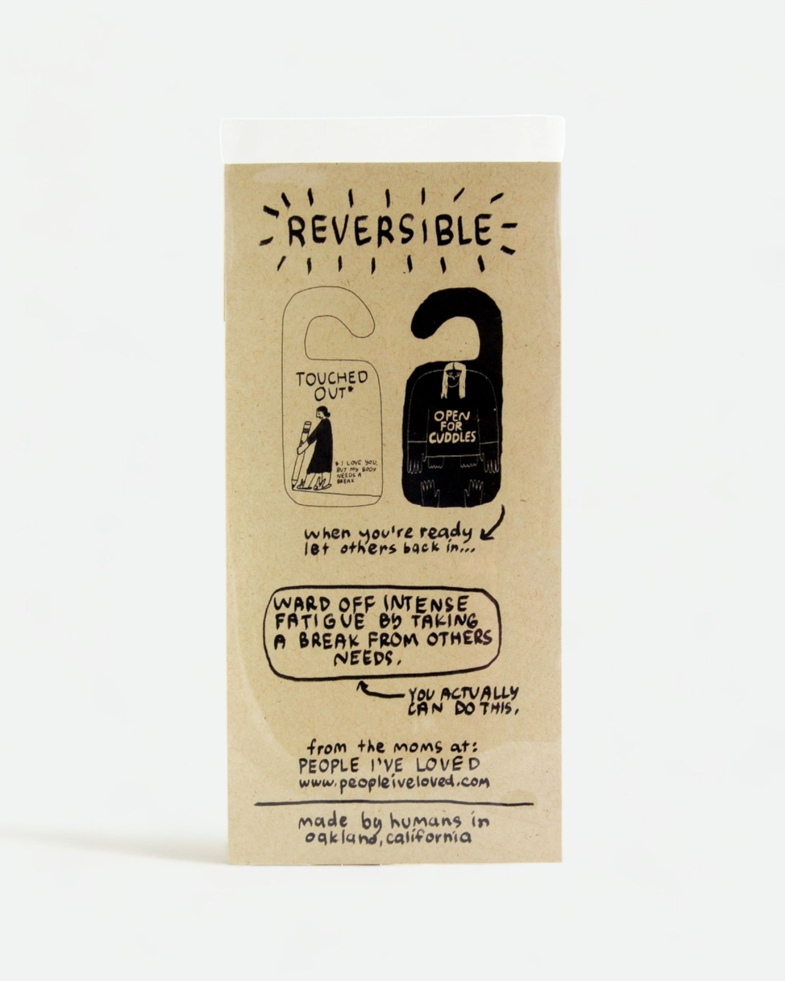 Touched out? I feel you. (But I won't literally feel you right now.) Ward off intense fatigue by giving your body the breathing room it needs. I promise, it's allowed! Reversible: Open for Cuddles. Letter-pressed by hand on archival-quality cardstock in Oakland, CA art studio.