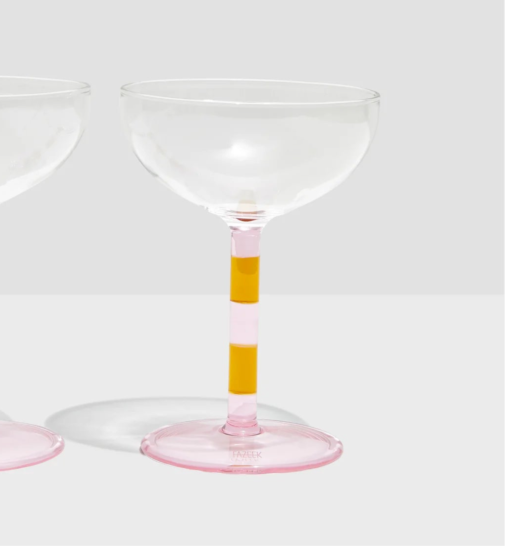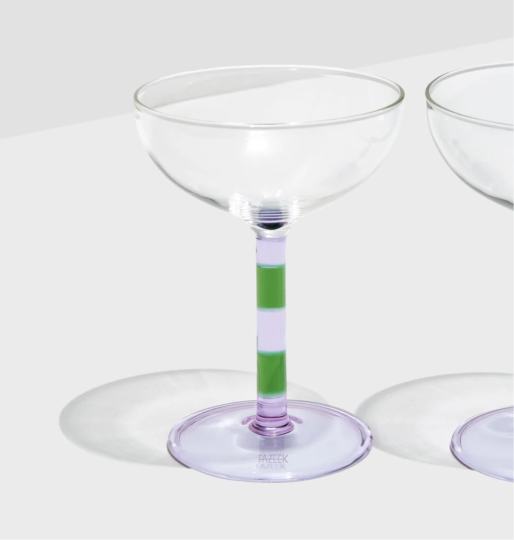 Traditionally shaped, with a touch of FAZEEK flair, these Striped Coupes are elegant and fun all at once.