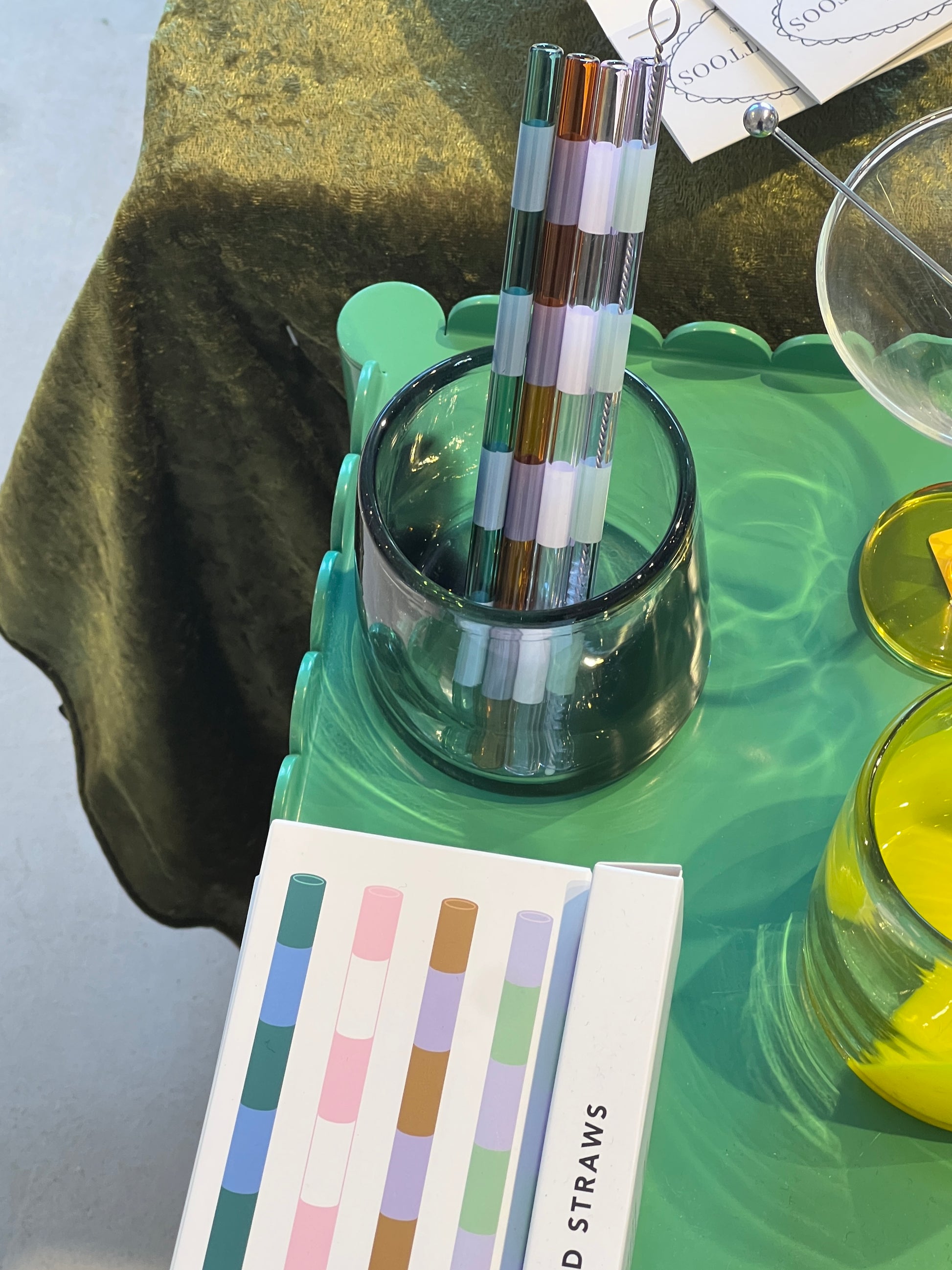FAZEEK’s Striped Straws will add extra enjoyment to your favorite beverages. These glass straws are made for your iced coffees, fruit sodas or even cheeky cocktails amongst friends. They sit beautifully in our Wave Glasses, and with 4 different color ways, you'll never lose your specific straw or drink at the party!